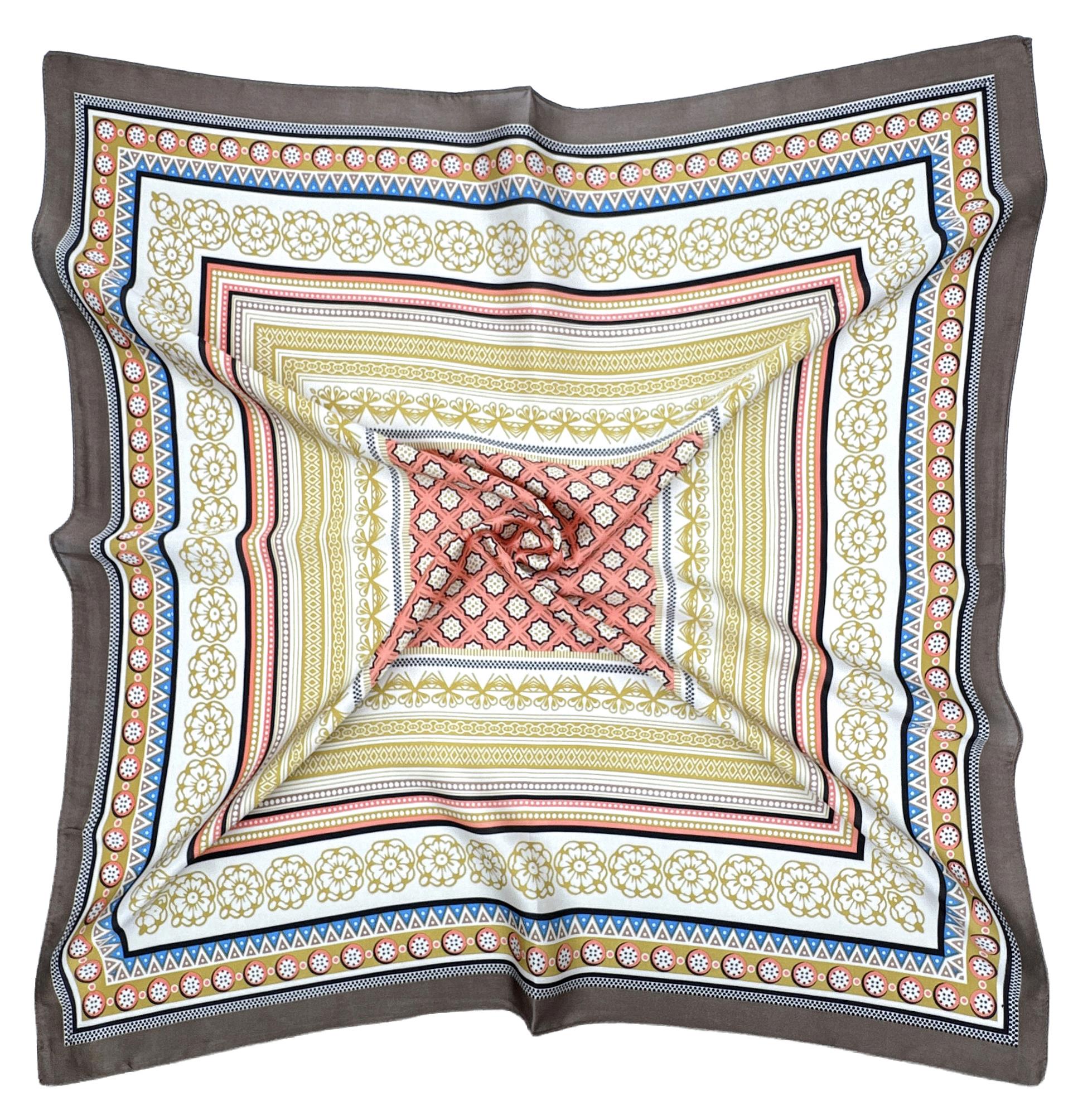 VINTAGE ORNAMENT MIX PATTERN SILKY BANDANA NECK SCARF