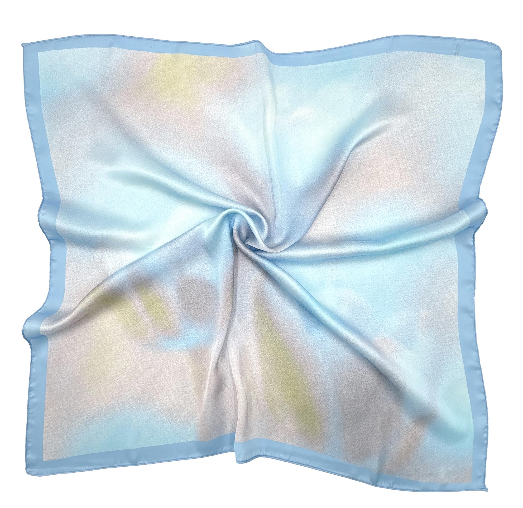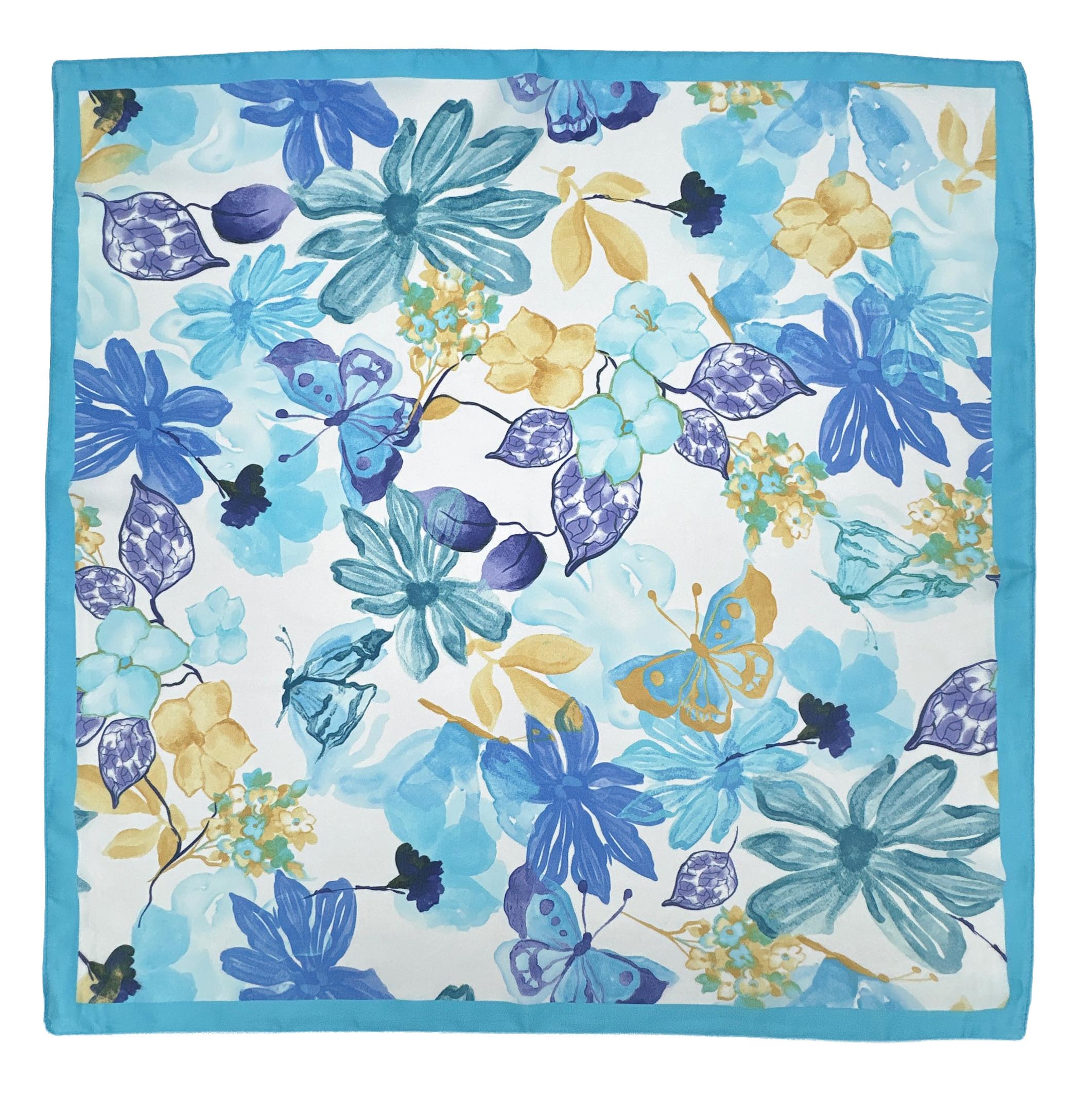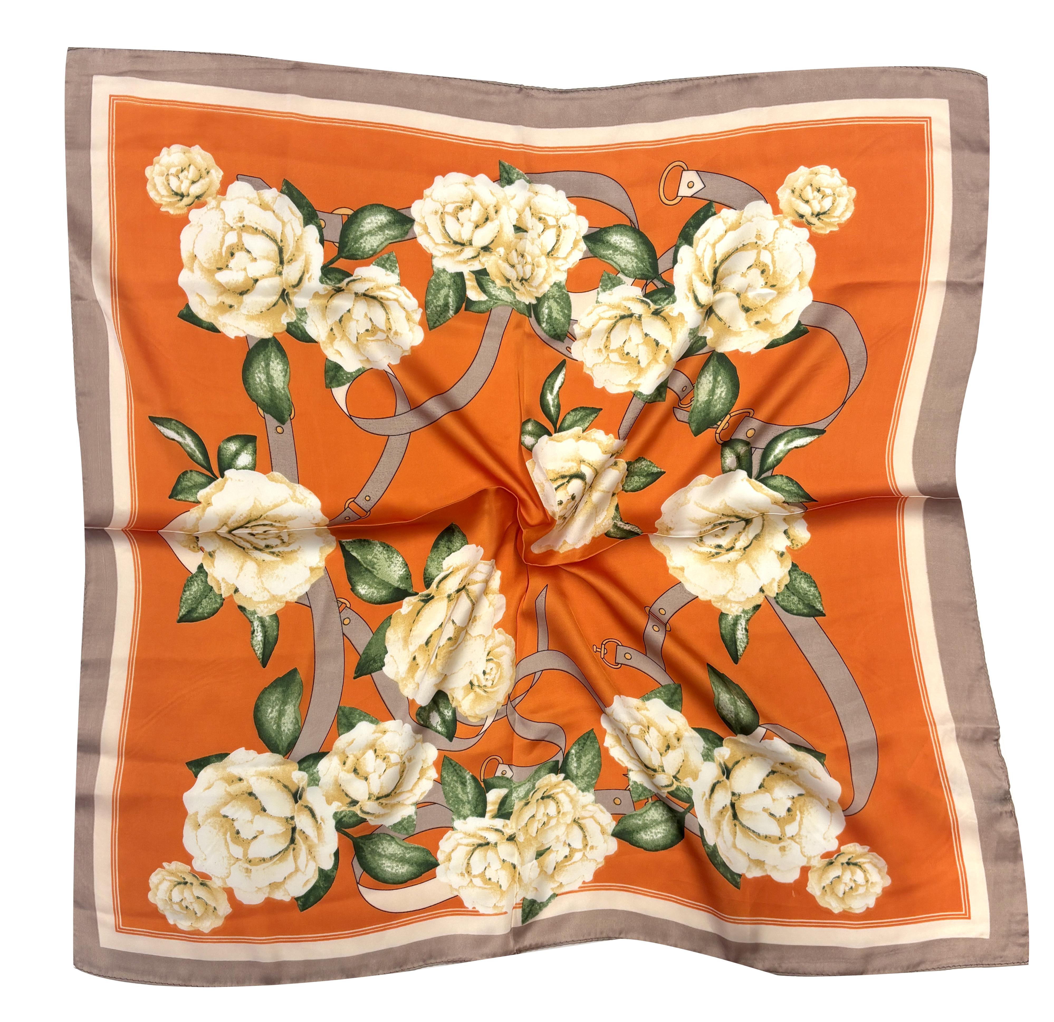 DELICATE FLORAL BORDER PRINT SILKY BANDANA SQUARE NECK SCARF
