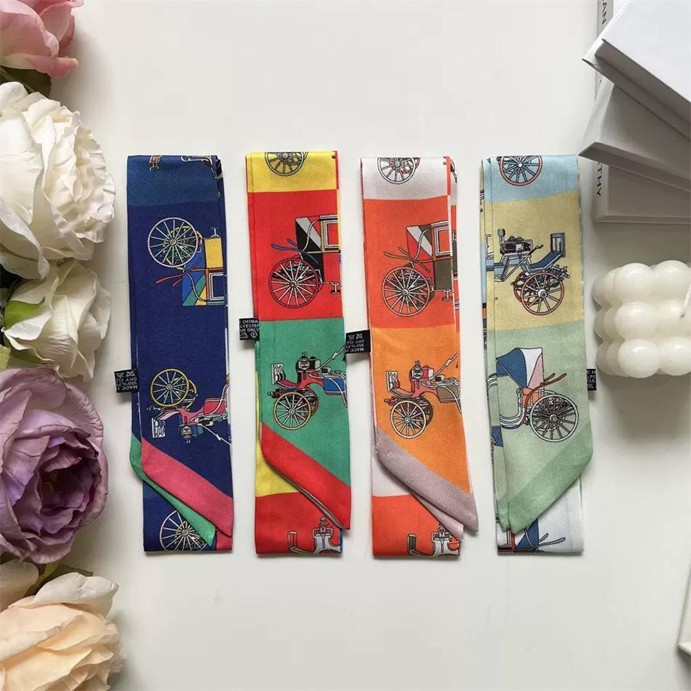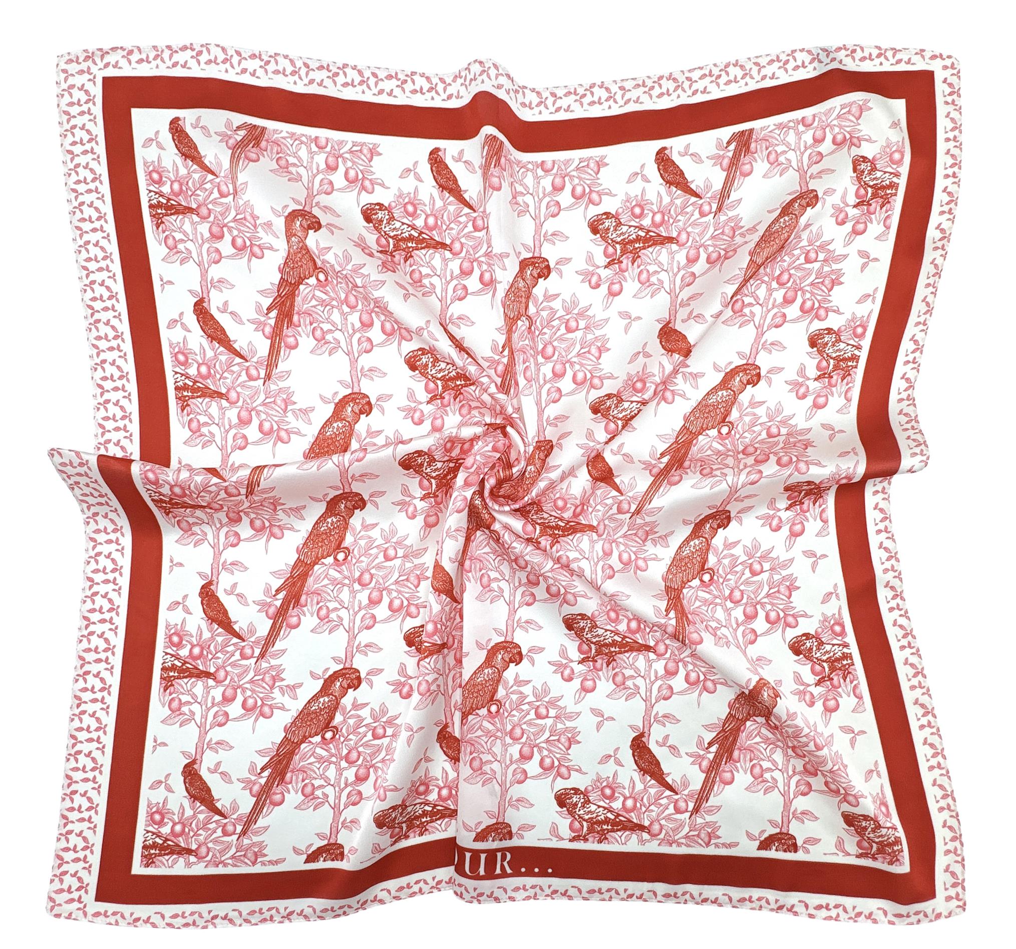 SPRING TULIP FLORAL PRINT SILKY BANDANA SQUARE NECK SCARF
