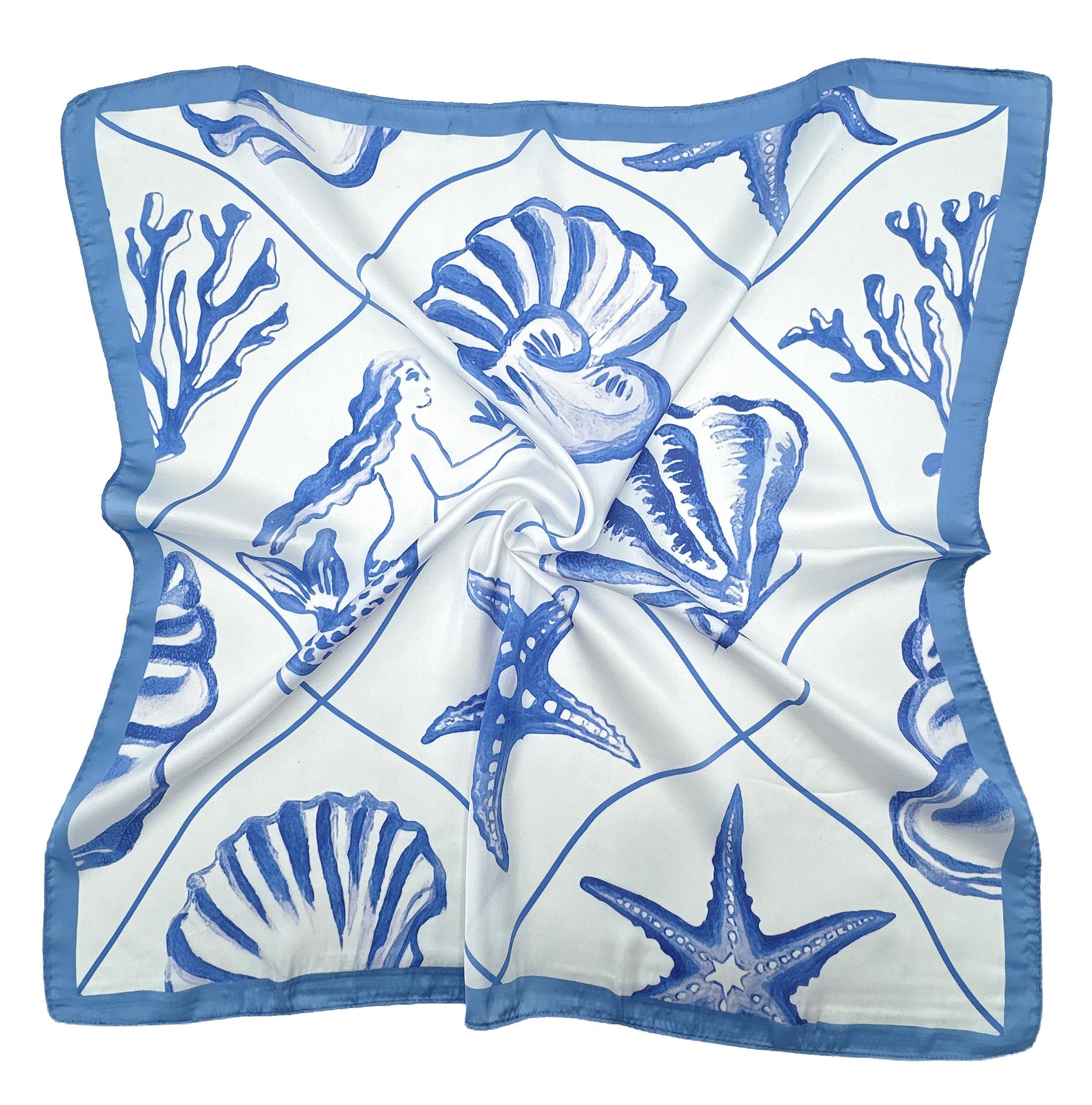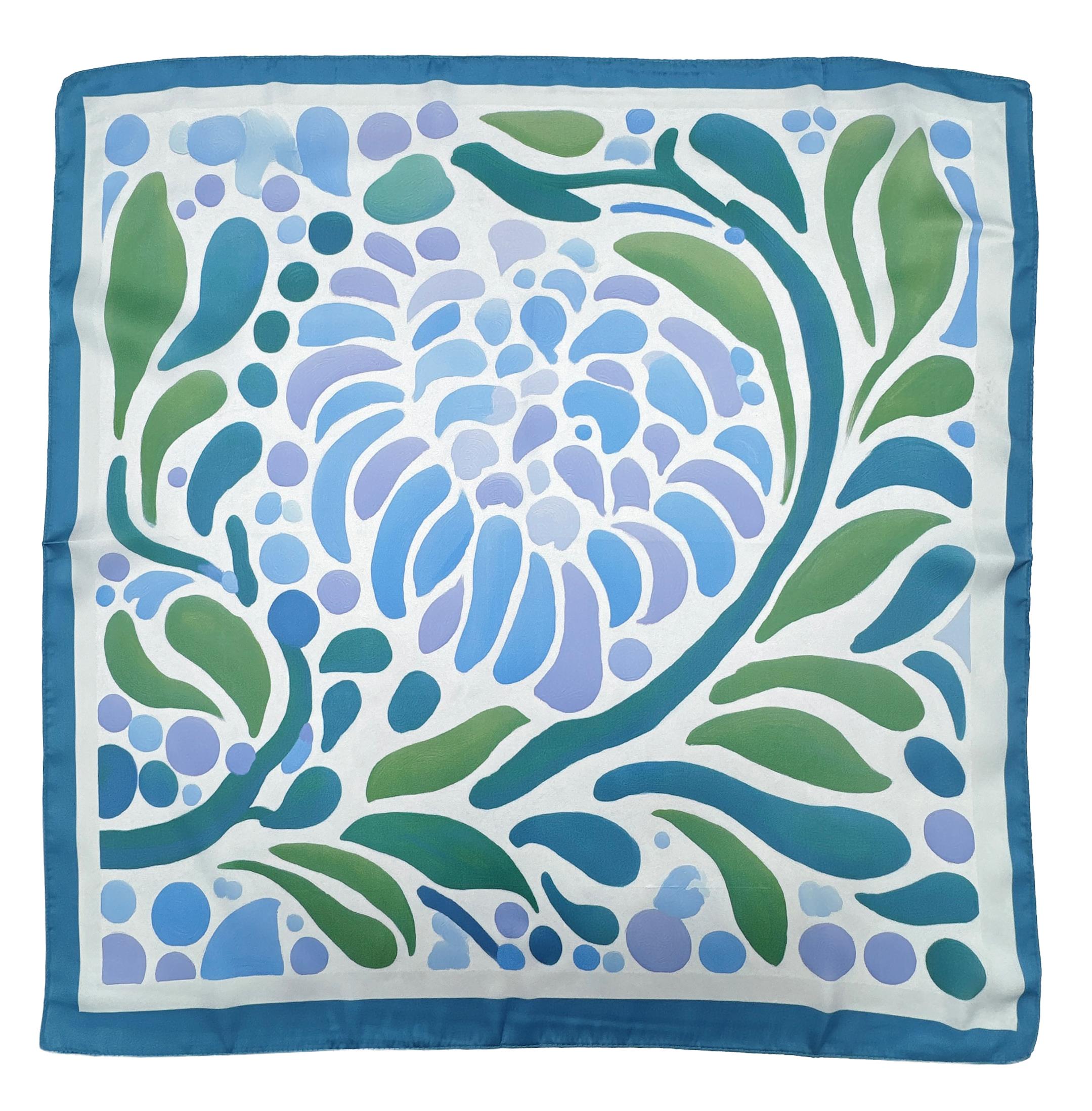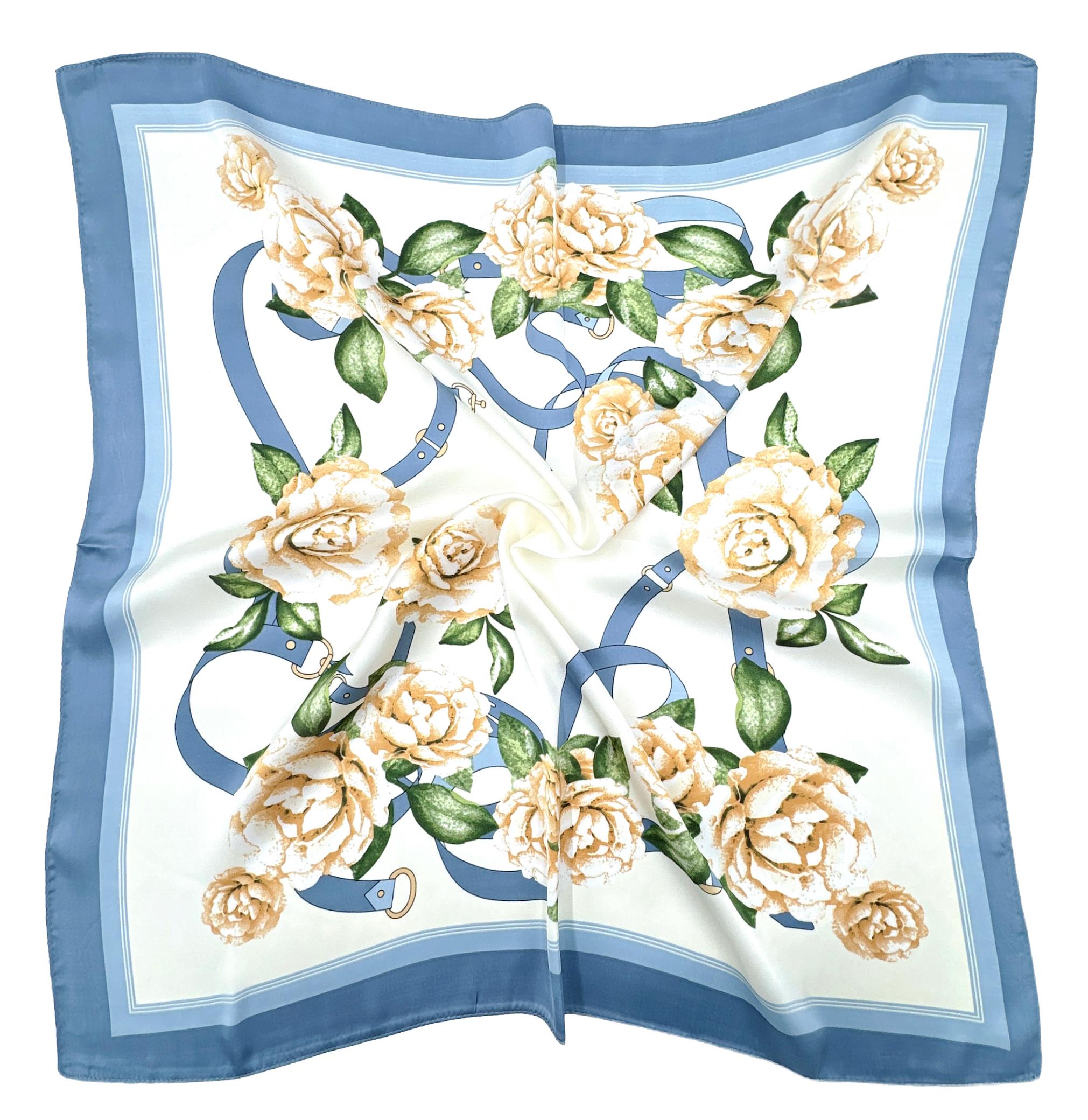 FLOWER CHAIN PRINT SILKY BANDANA SQUARE NECK SCARF