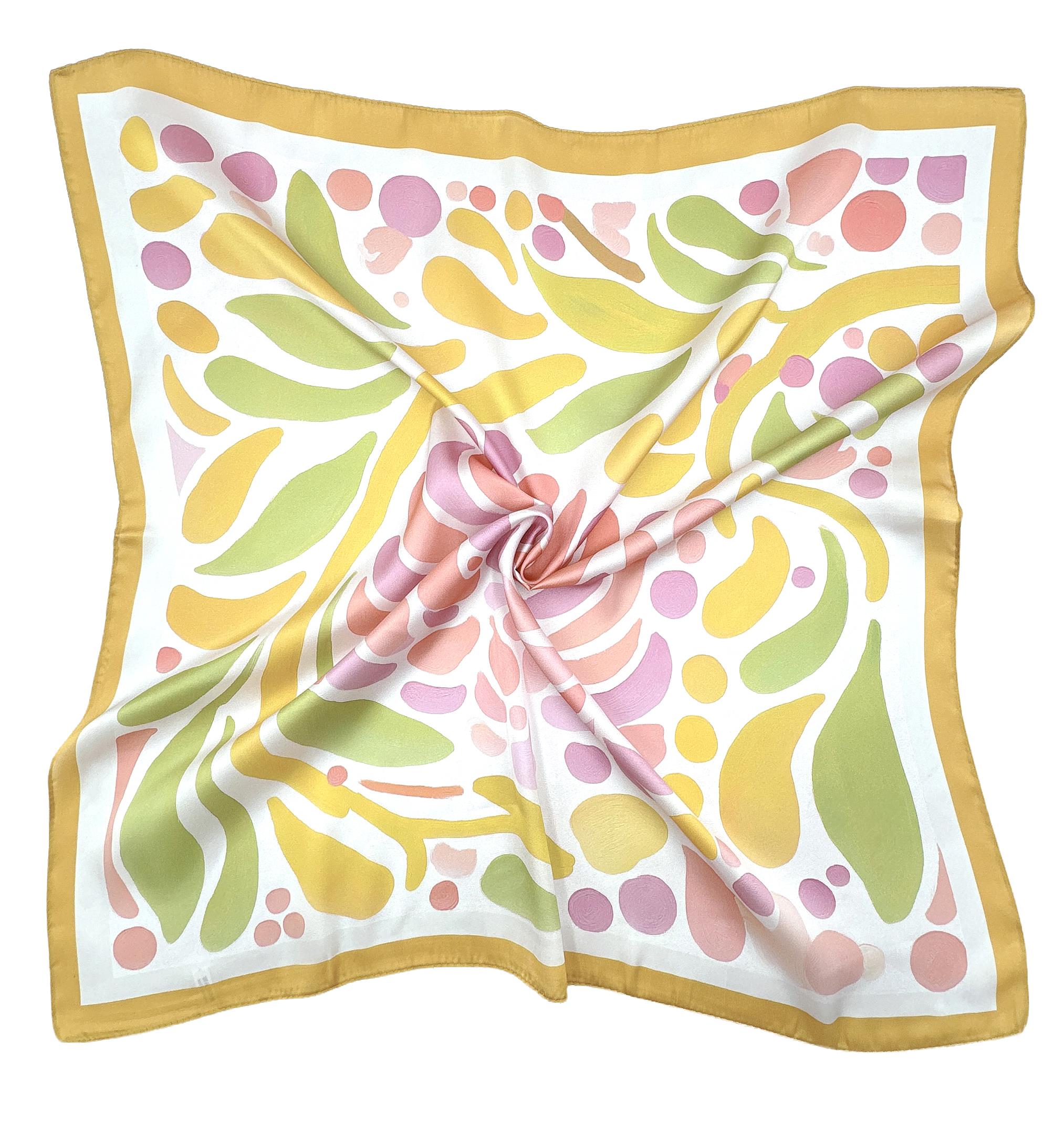 FLOWER CHAIN MIX PATTERN SILKY BANDANA NECK SCARF
