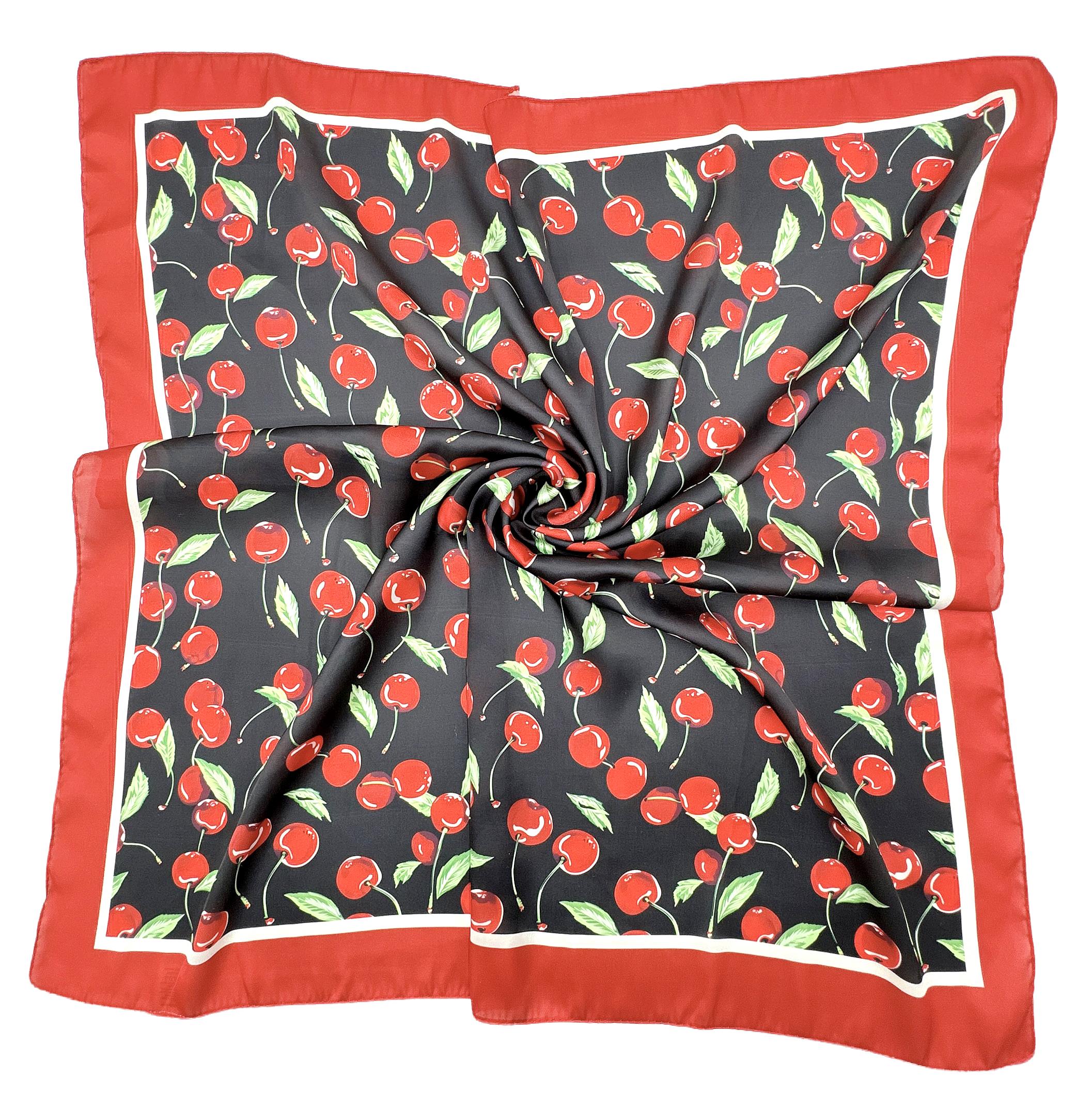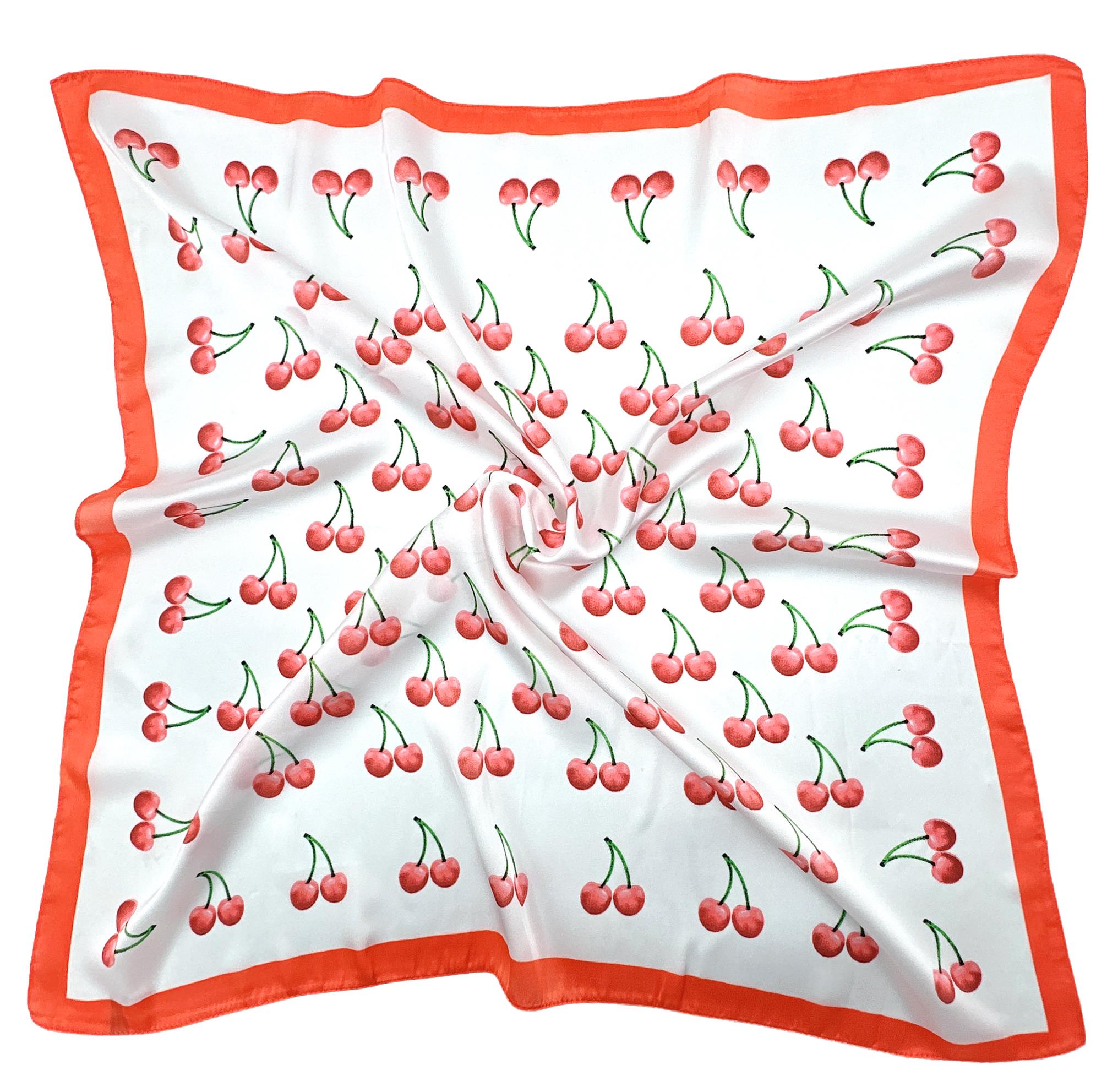 CHERRY PATTERN SILKY BANDANA NECK SCARF