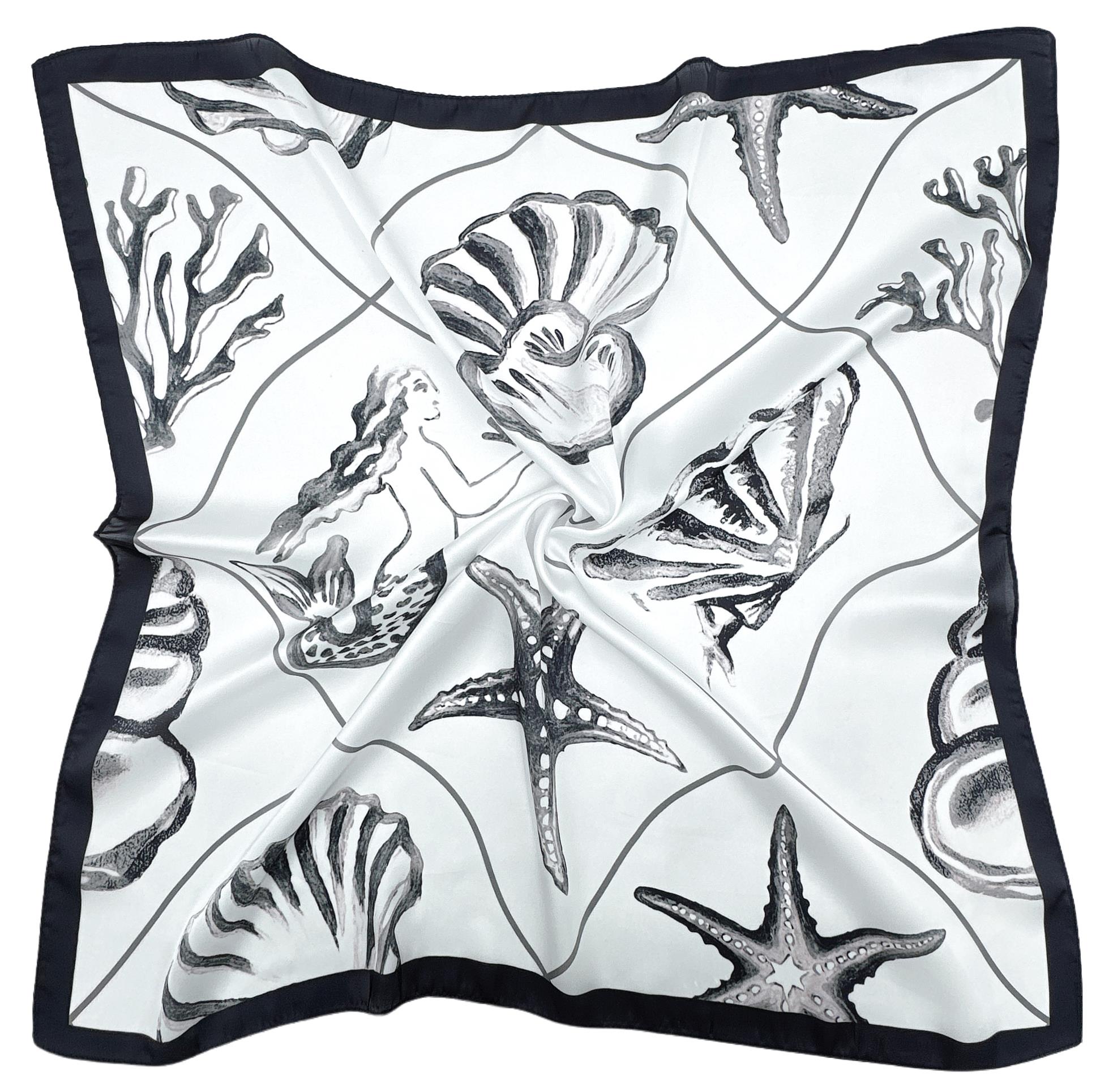 LARGE FLORAL OUTLINE PRINT SILKY BANDANA SQUARE NECK SCARF