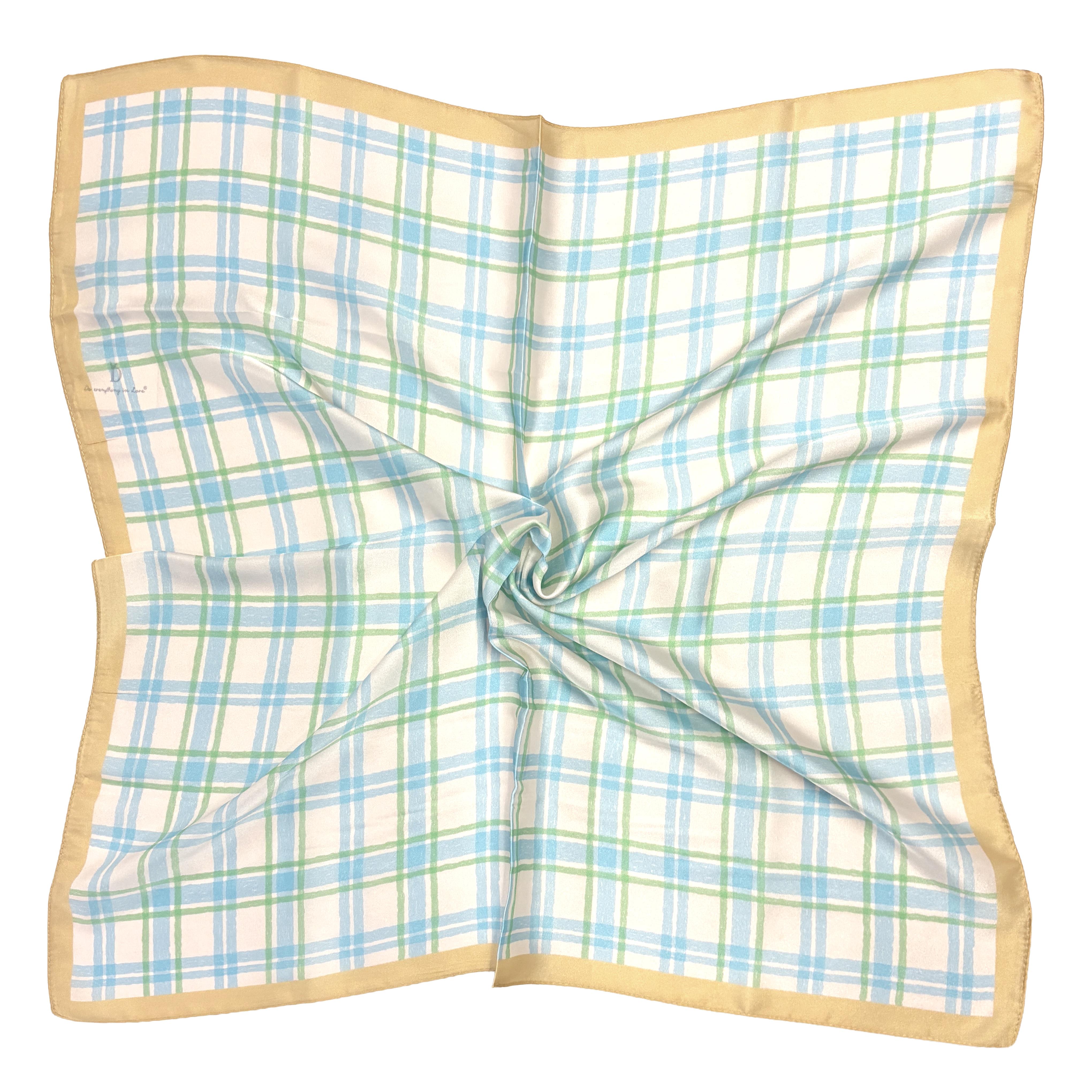 CHECK GRID ORNAMENT MIX PATTERN SILKY BANDANA NECK SCARF