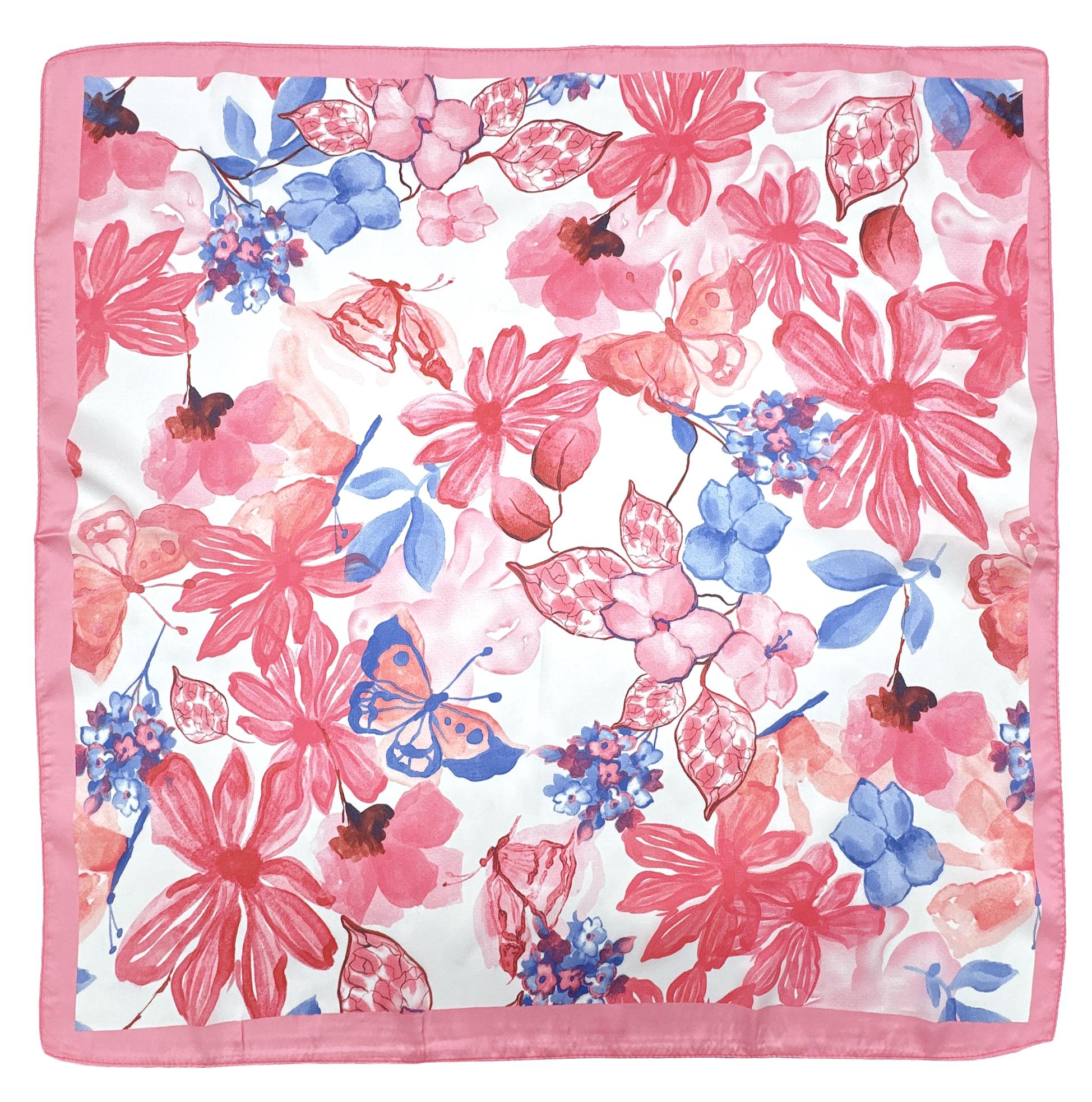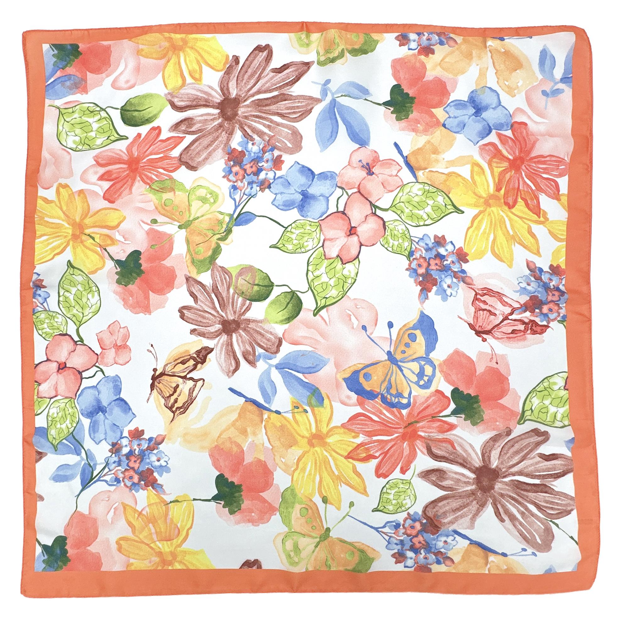 FLOWER PATTERN SILKY SQUARE BANDANA NECK SCARF