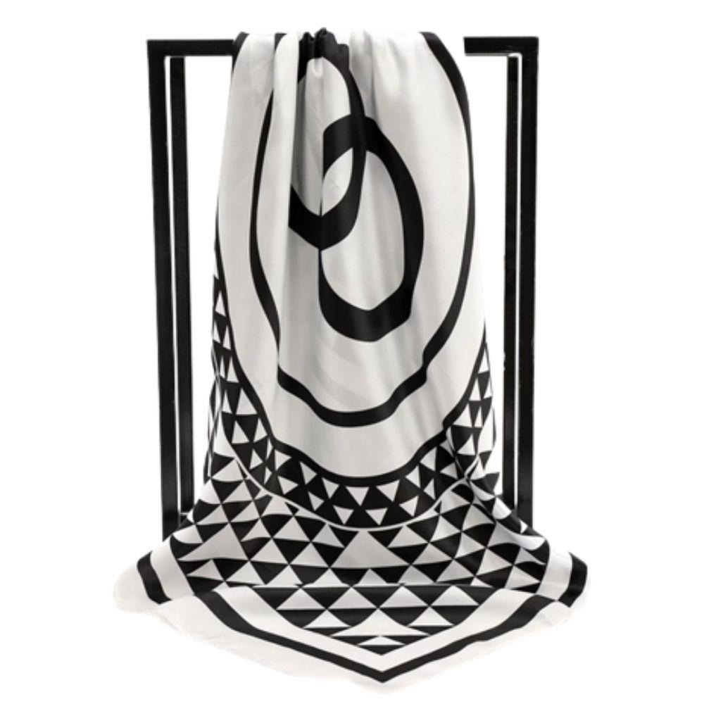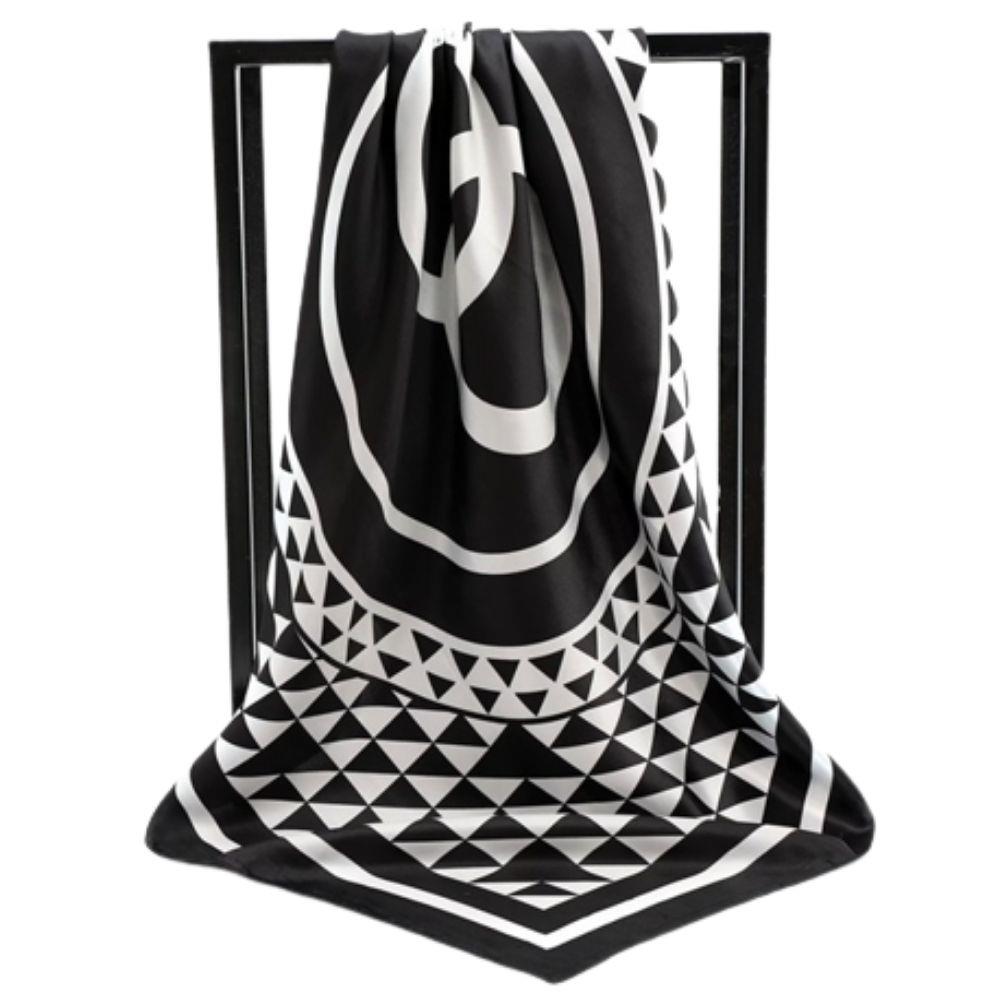 CHAIN GRID PANEL PATTERN SILKY BANDANA SQUARE NECK SCARF