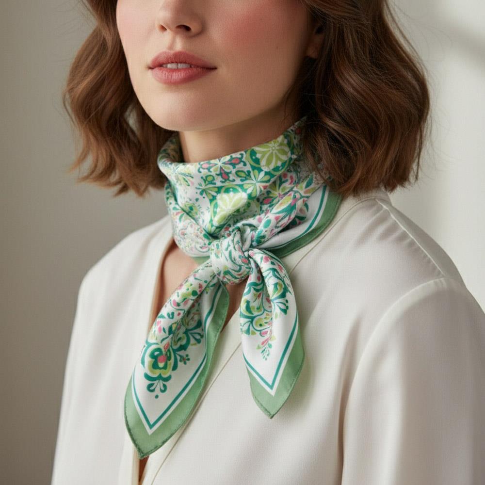 FLOWER CHAIN PRINT SILKY BANDANA SQUARE NECK SCARF