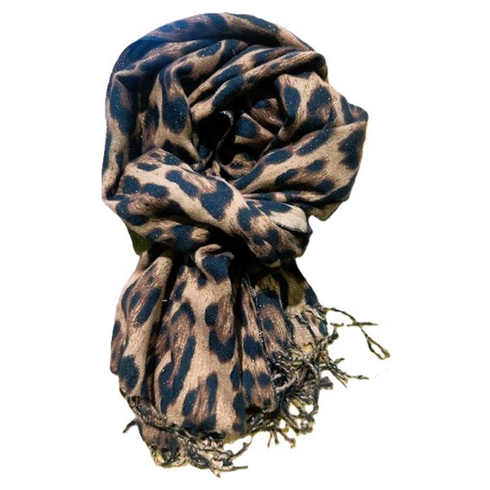 LEOPARD PRINT GLITTER FRINGE OBLONG SCARF