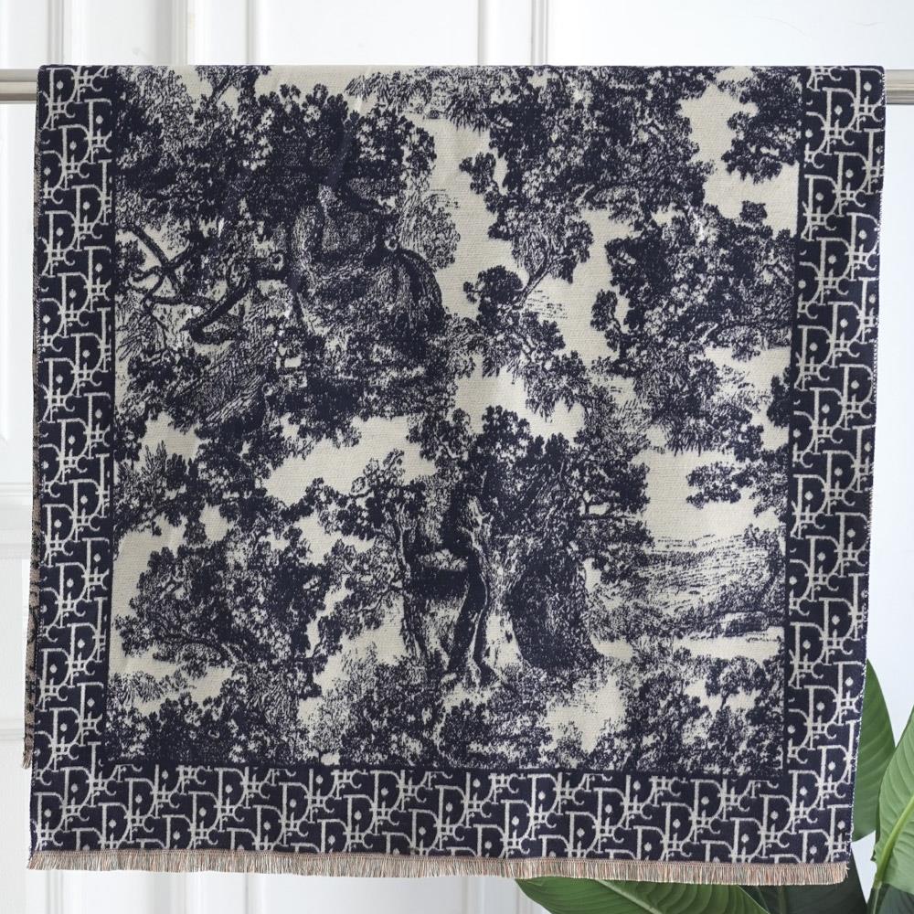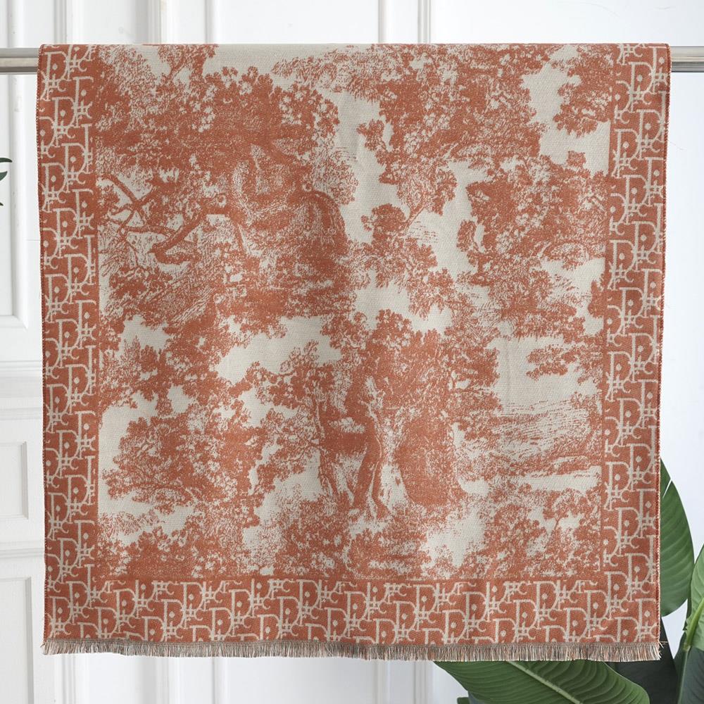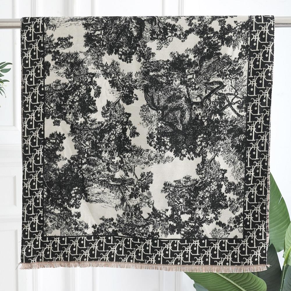 SCENIC PATTERN JACQUARD FRINGE EDGE LIGHTWEIGHT OBLONG SCARF