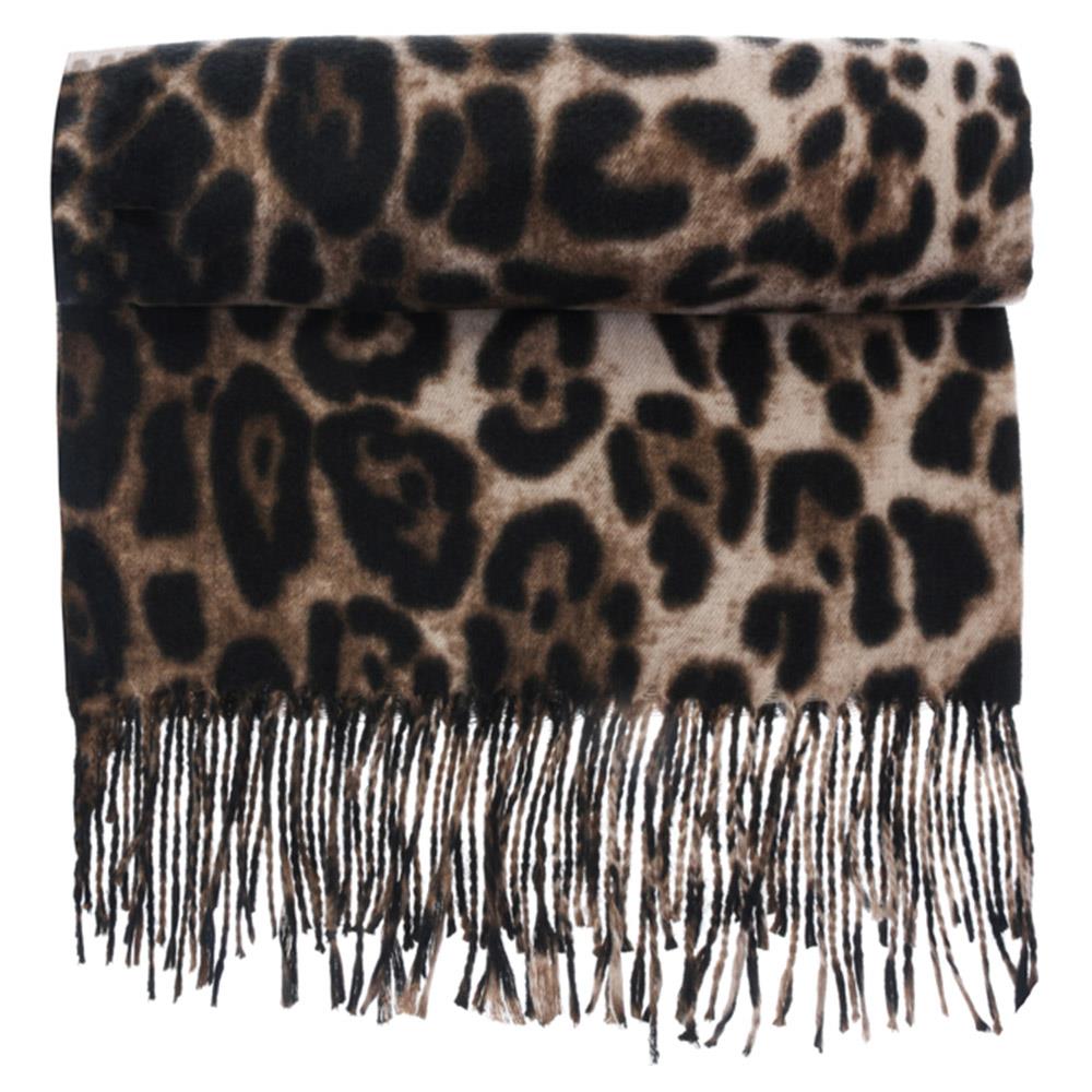 LEOPARD PATTERN FRINGE OBLONG SCARF