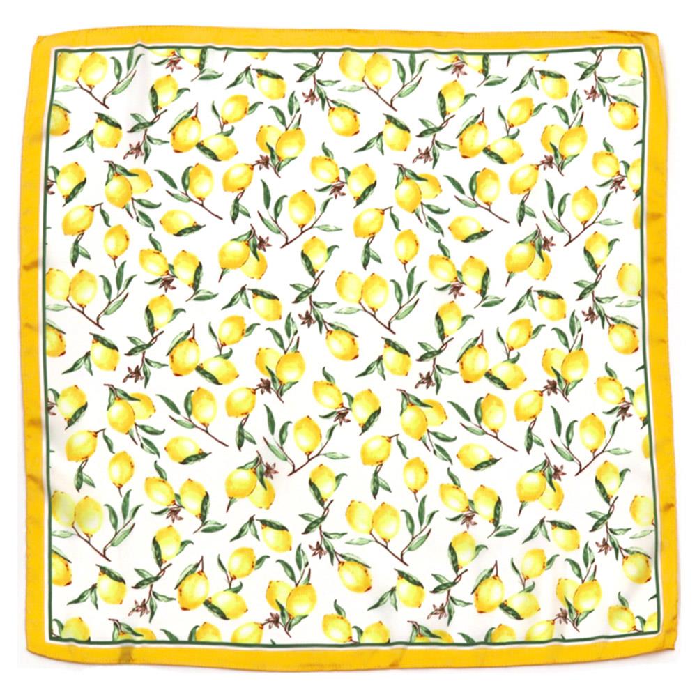 LEMON PRINTED SILKY SQUARE BANDANA NECK SCARF