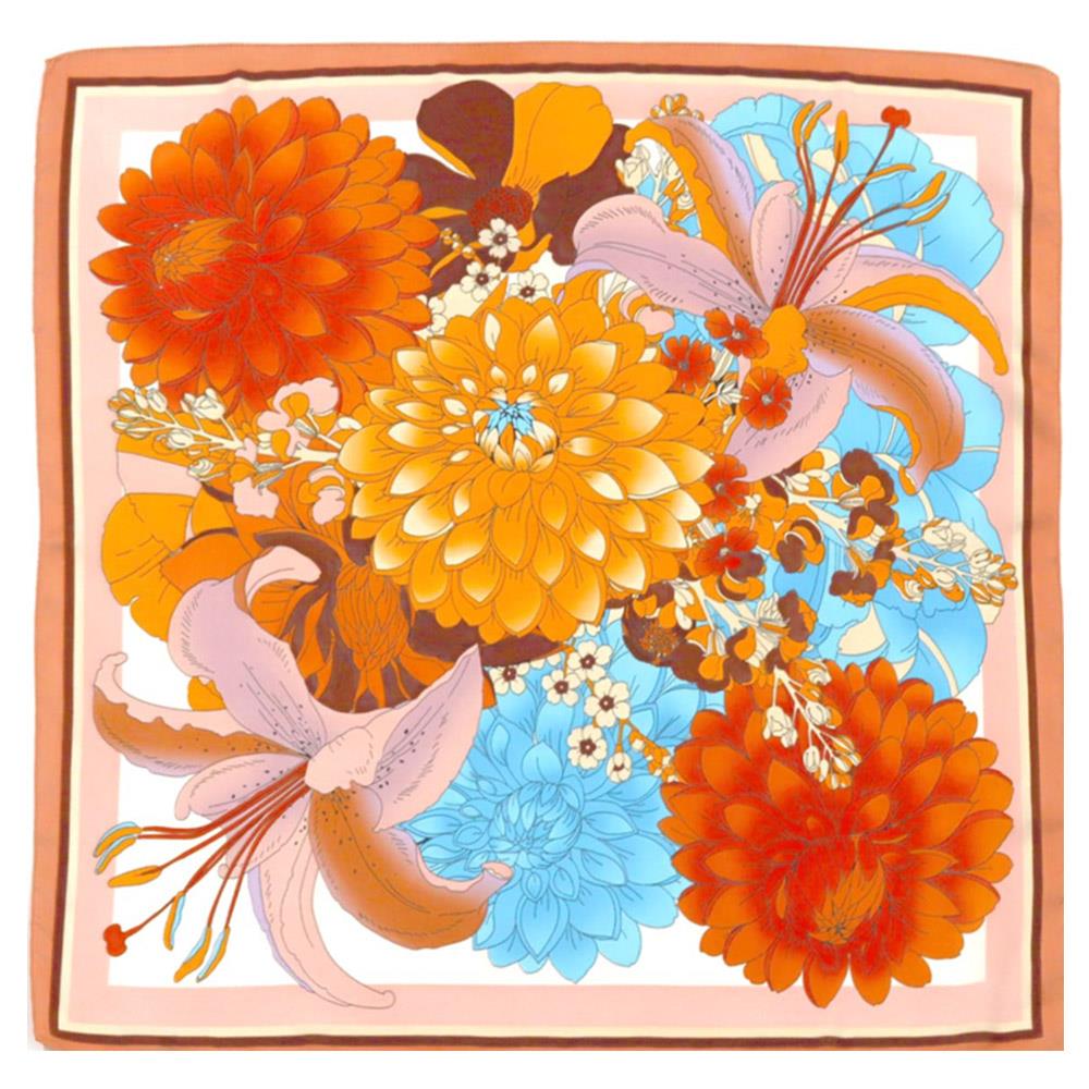 FLOWER PATTERN SILKY BANDANA SQUARE SCARF