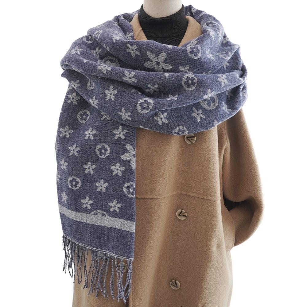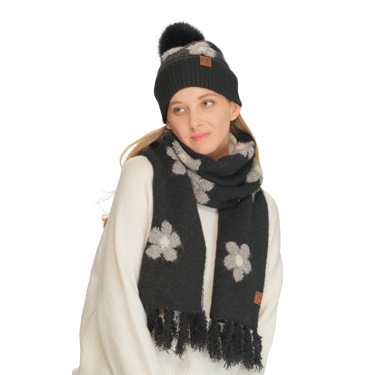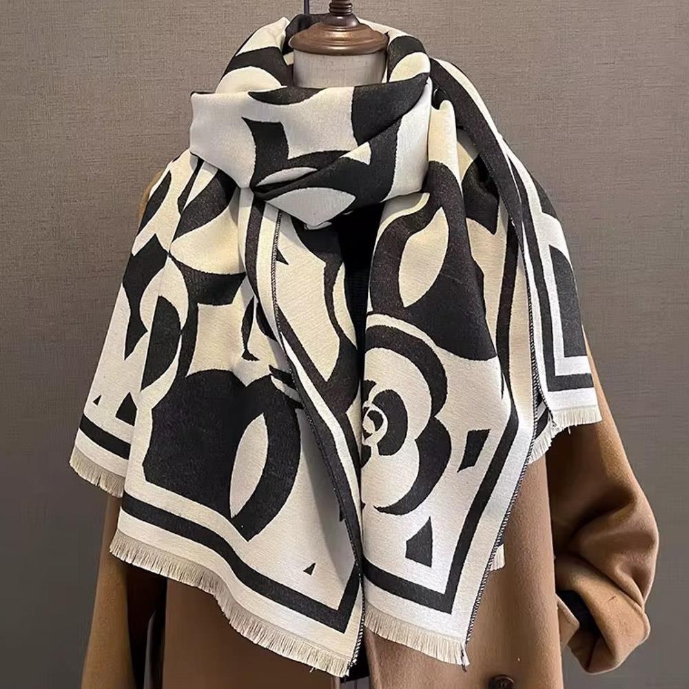 FLOWER MONOGRAM PATTERN FRINGE OBLONG SCARF