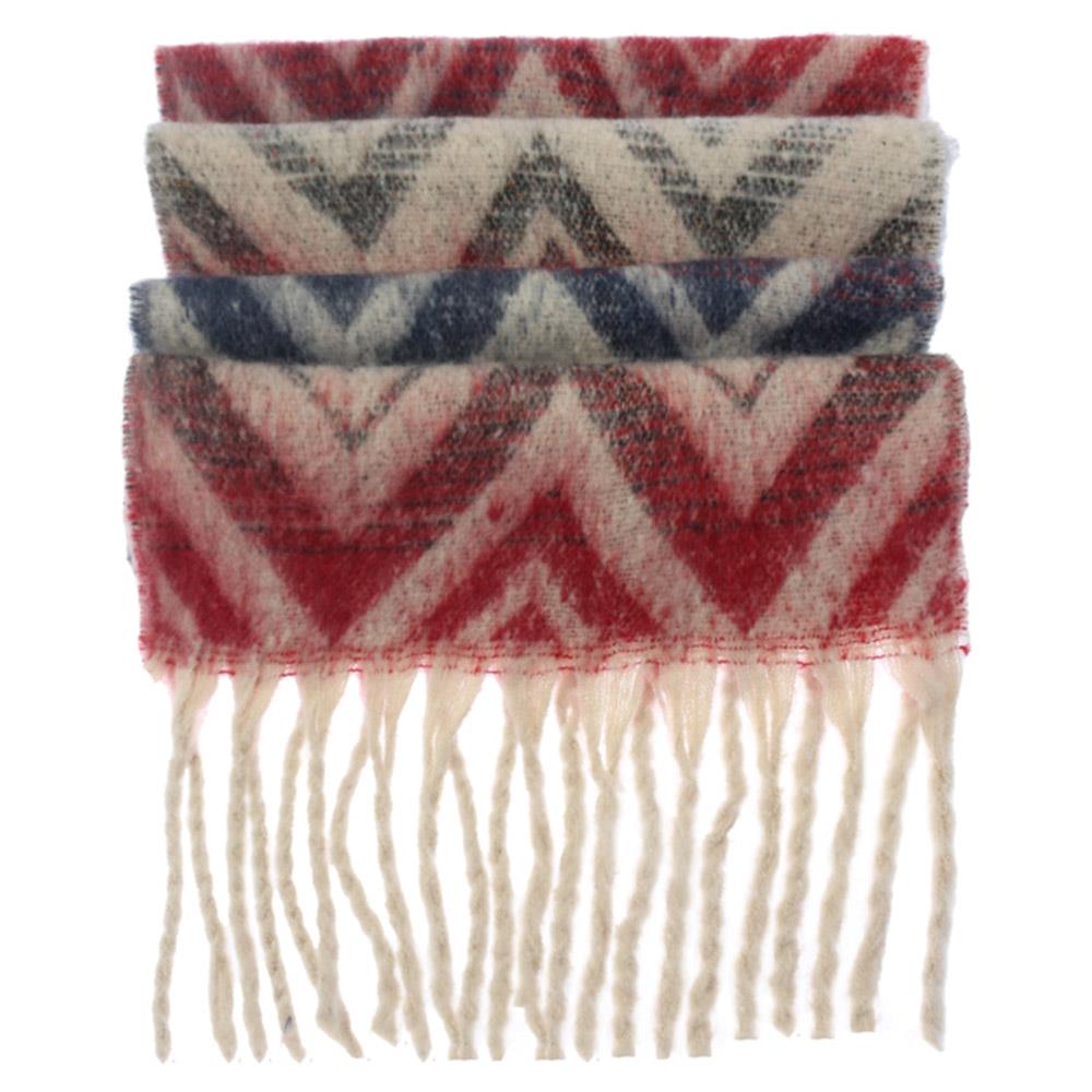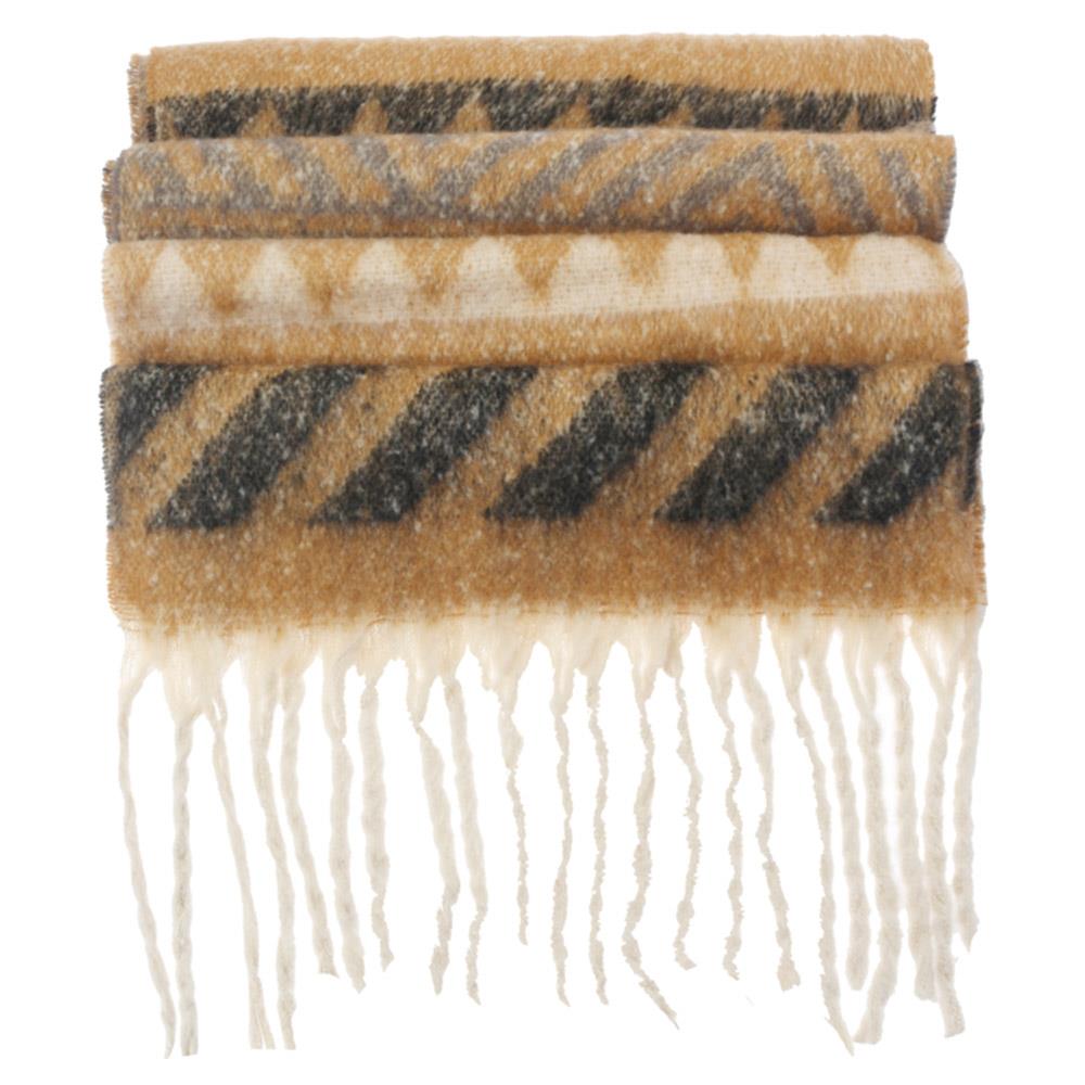 AZTEC PATTERN FRINGE EDGE KNIT OBLONG SCARF