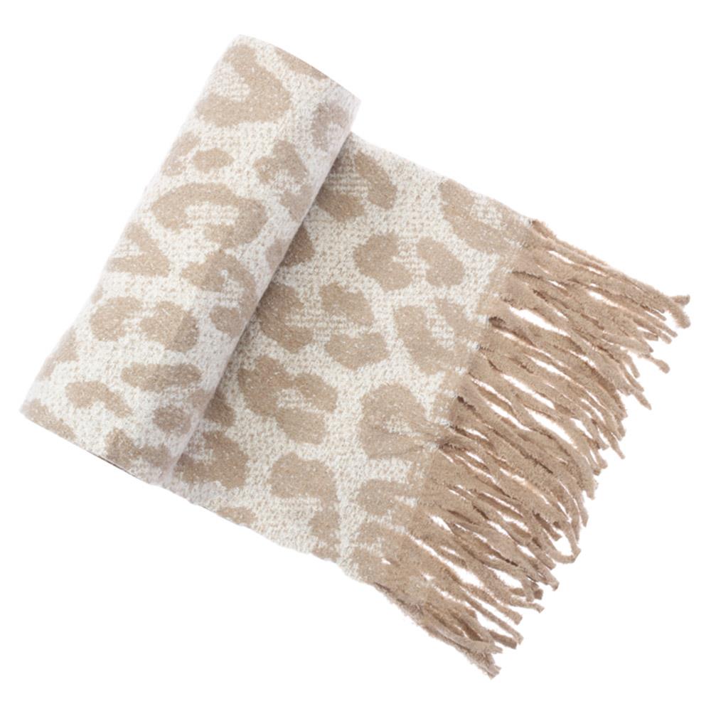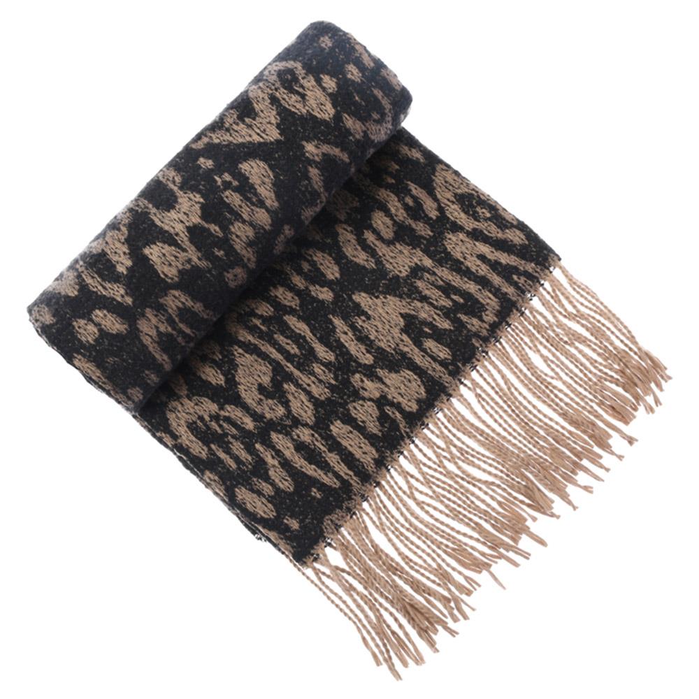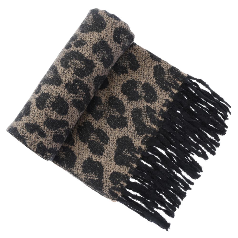 LEOPARD PATTERN FRINGE EDGE KNIT OBLONG SCARF