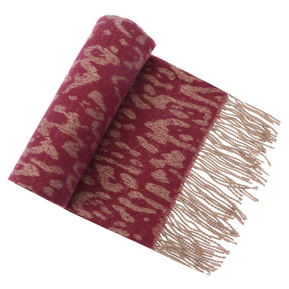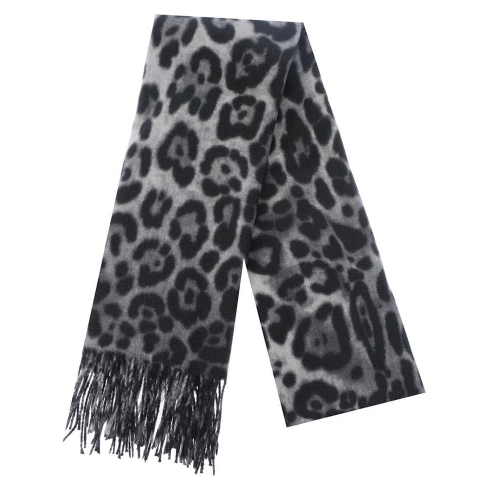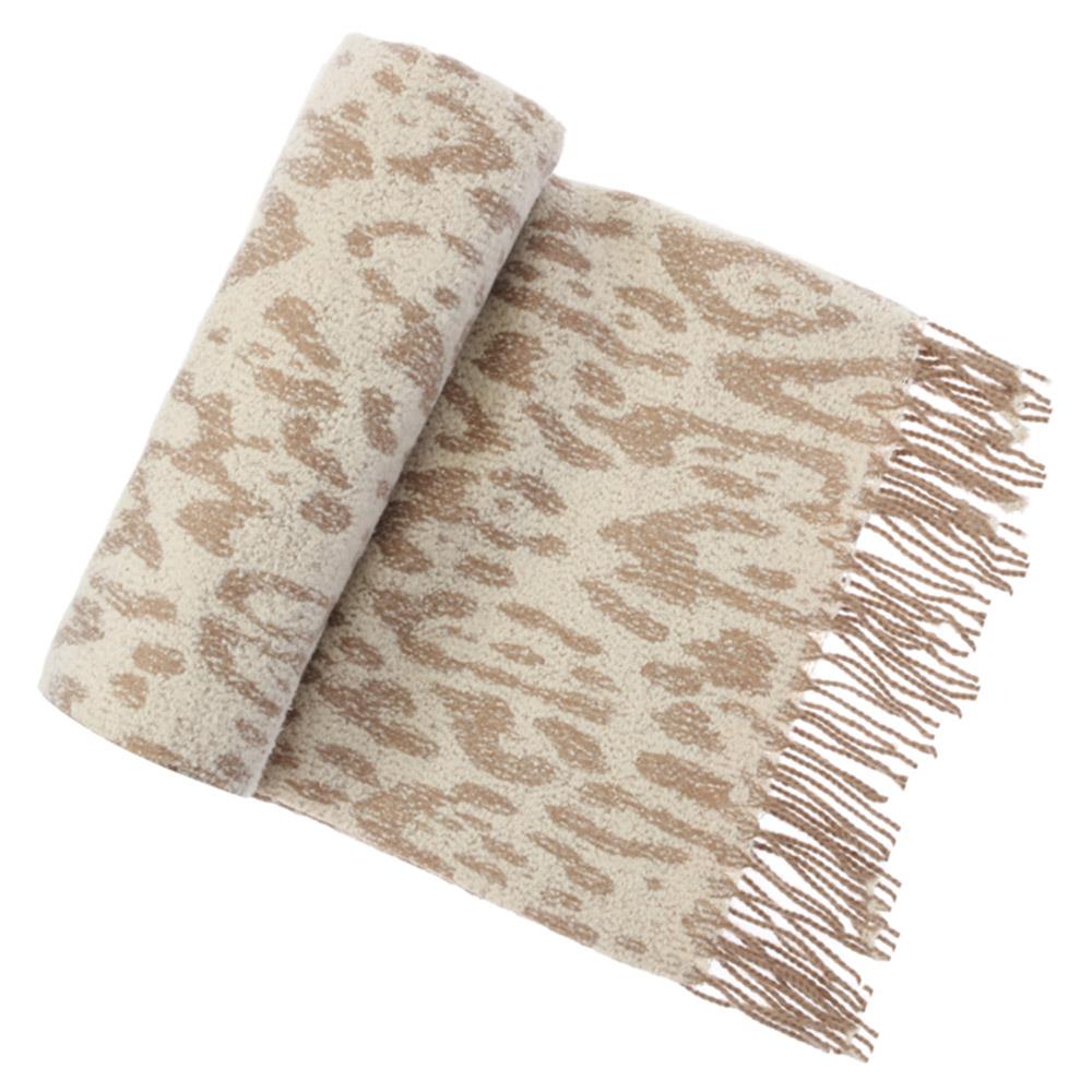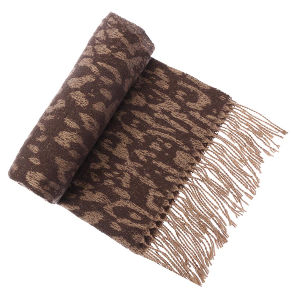 LEOPARD PATTERN FRINGE EDGE KNIT OBLONG SCARF