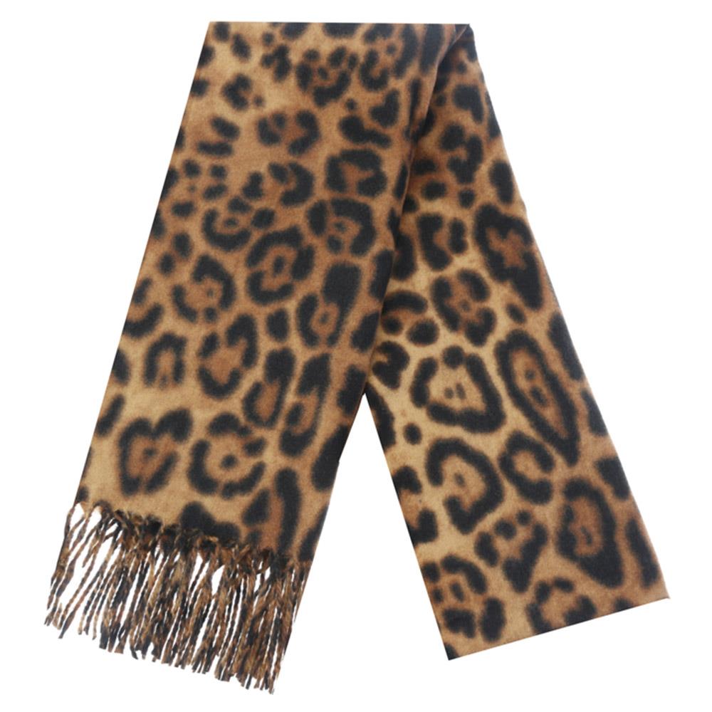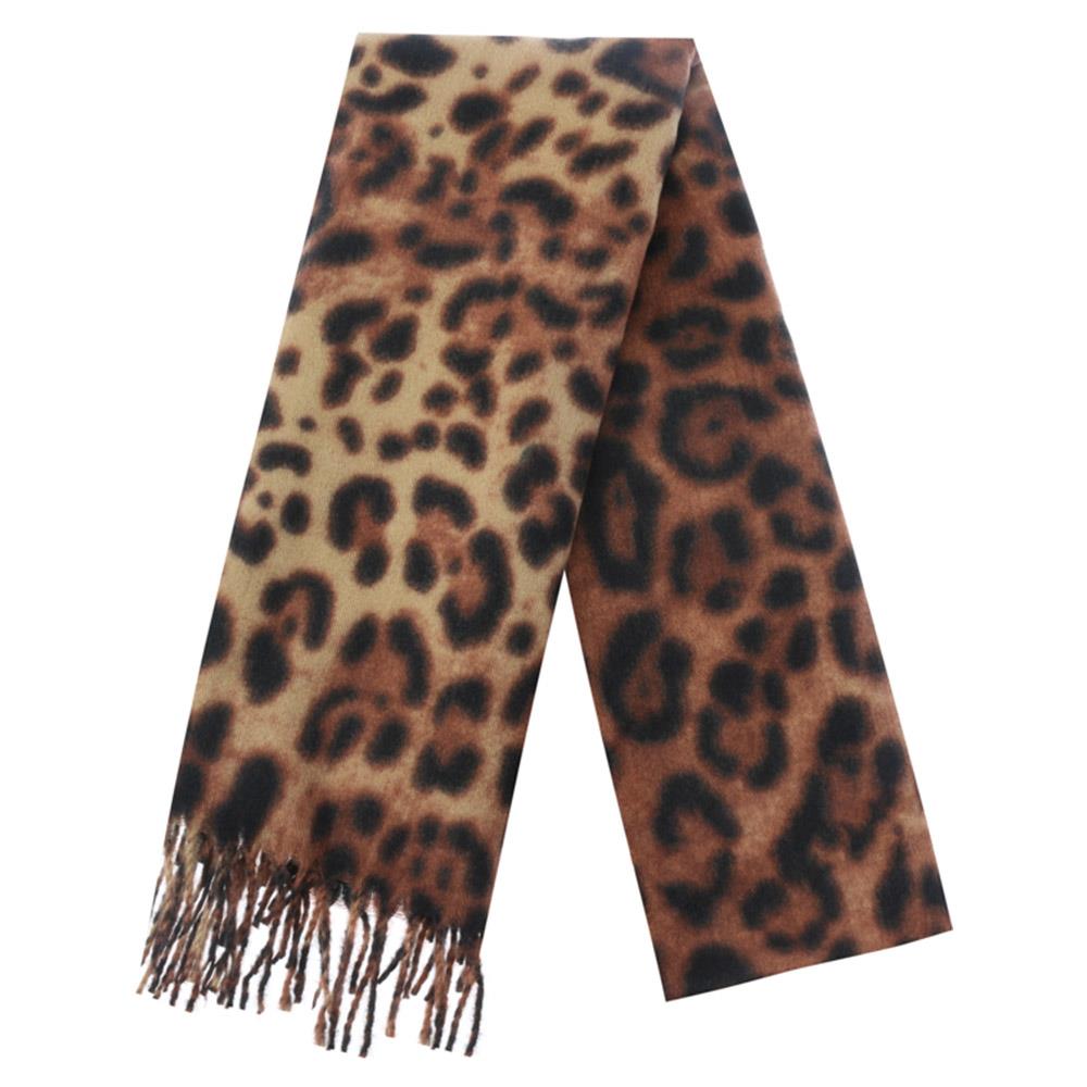 LEOPARD PATTERN FRINGE EDGE OBLONG SCARF