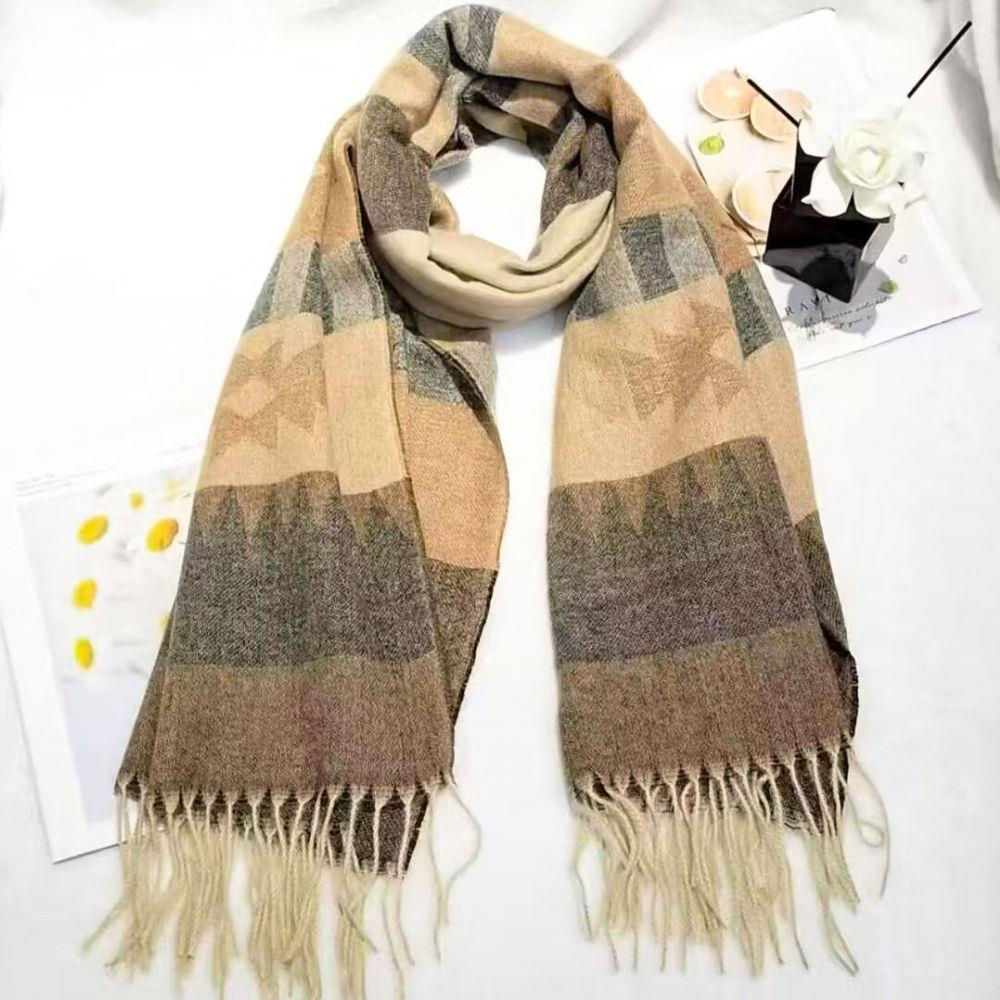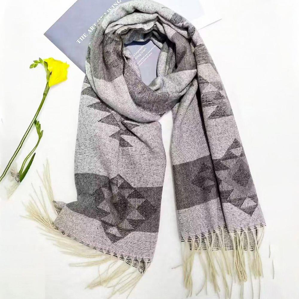 GEOMETRIC PATTERN FRINGE EDGE OBLONG SCARF