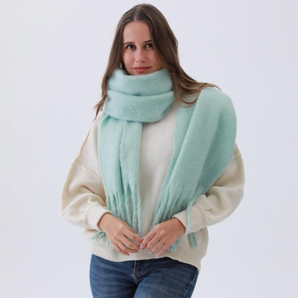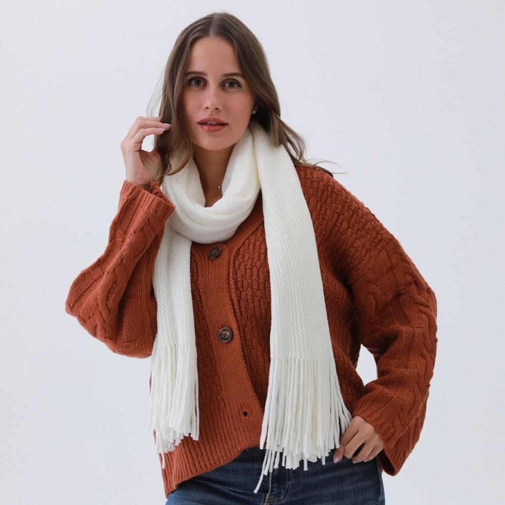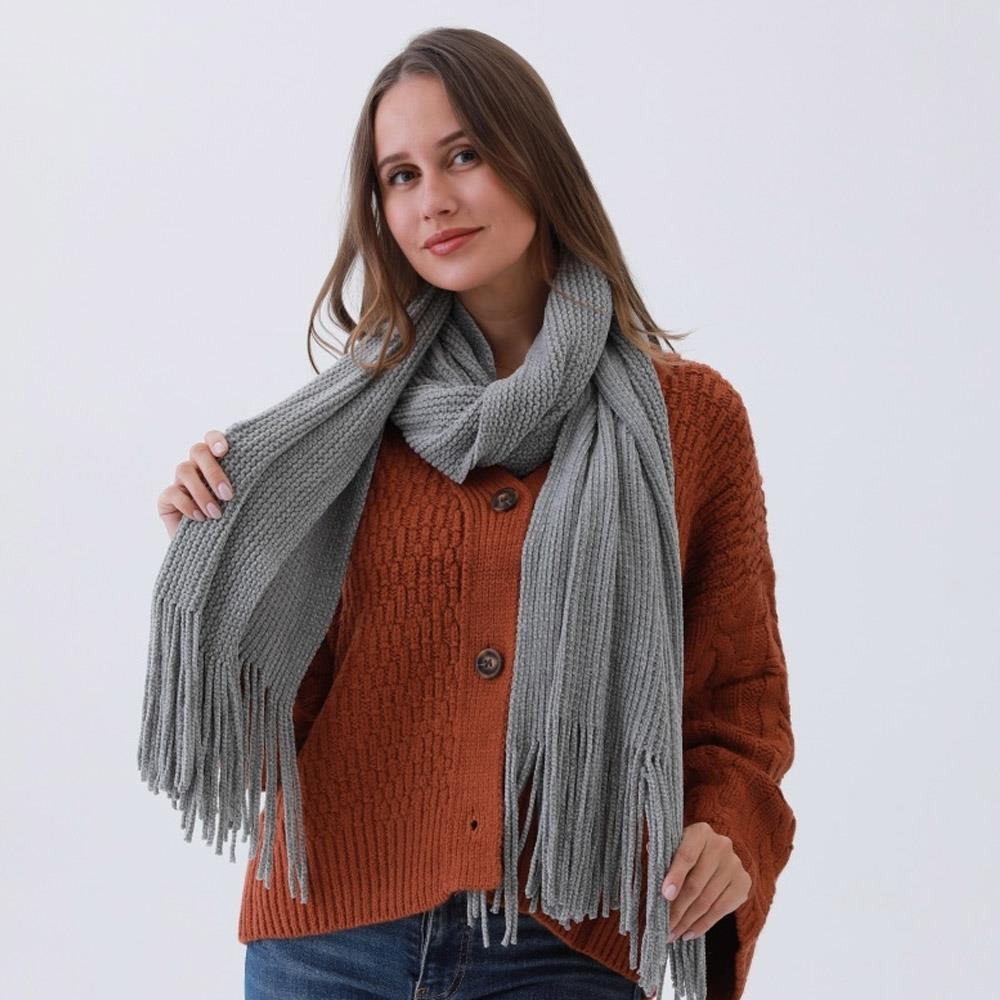 COZY KNIT SCARF - SOLID COLOR WITH TASSEL TRIM