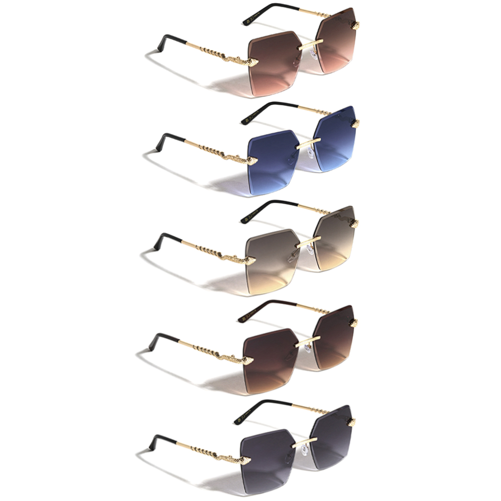 RIMLESS SNAKE HINGE ACCENT SQUARE SUNGLASSES 1DZ
