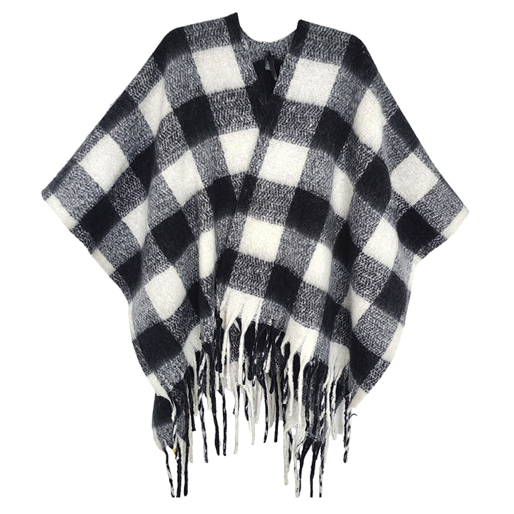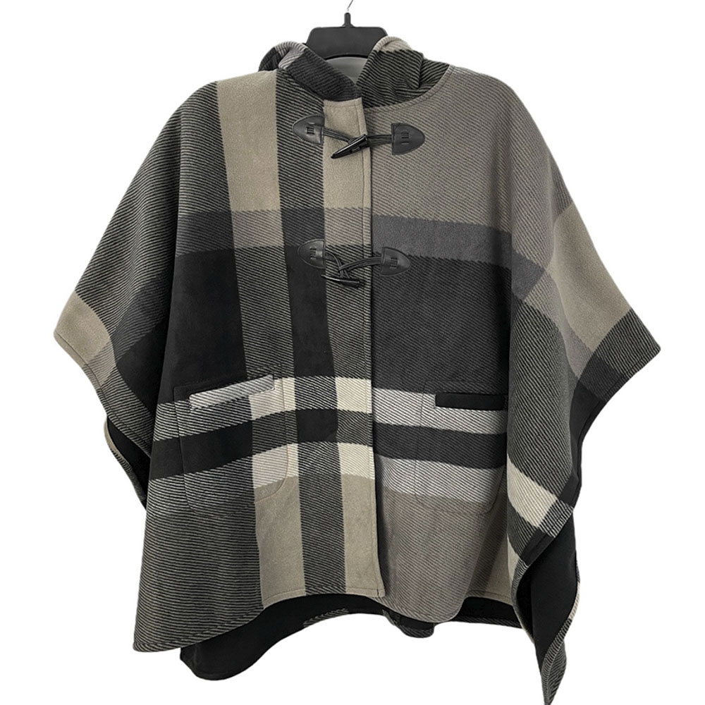 FASHION PLAID BUTTON CAPE WITH HOODIE