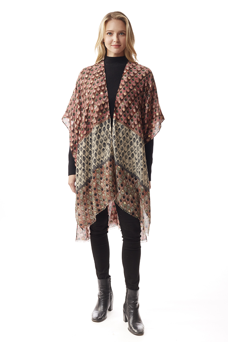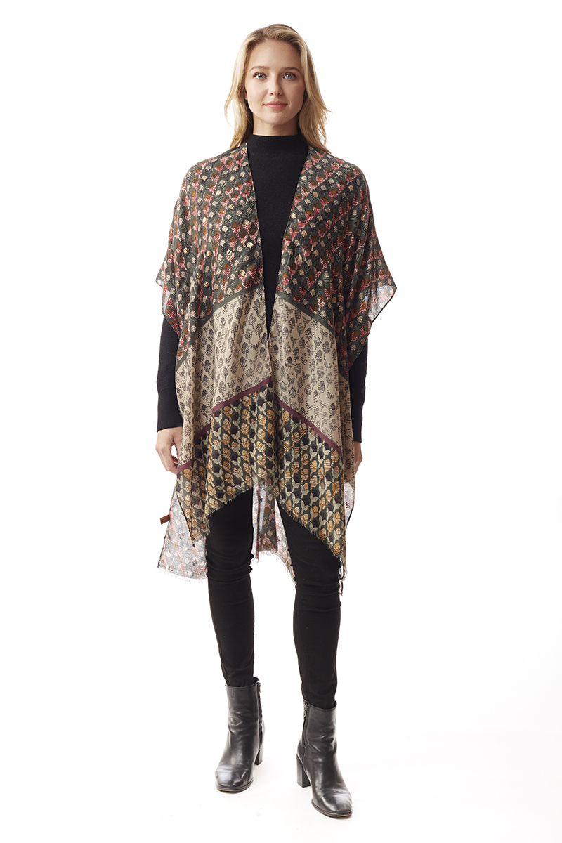 FASHION PATTERN EDGE TASSEL OPEN FRONT PONCHO