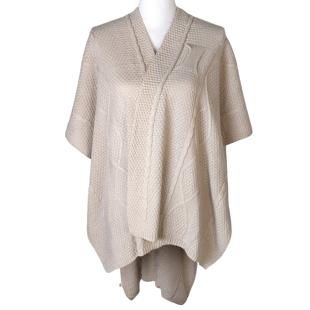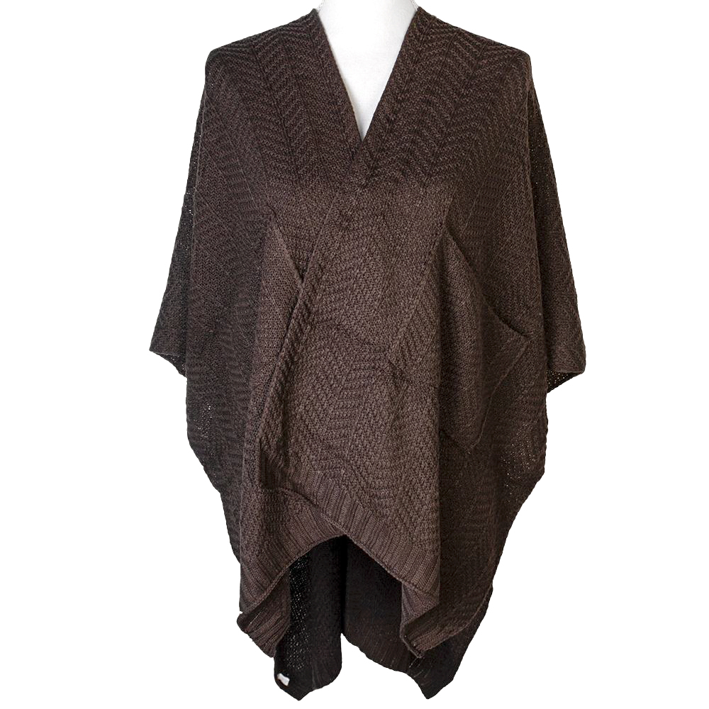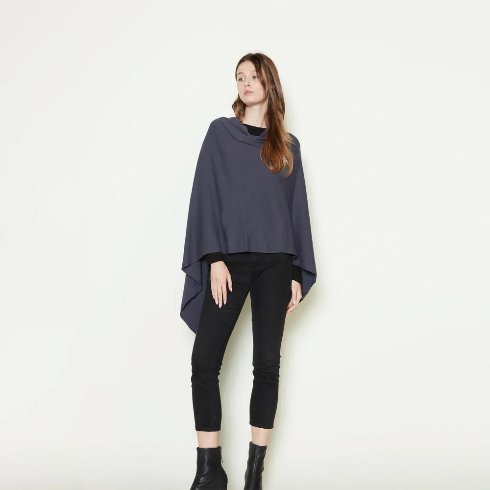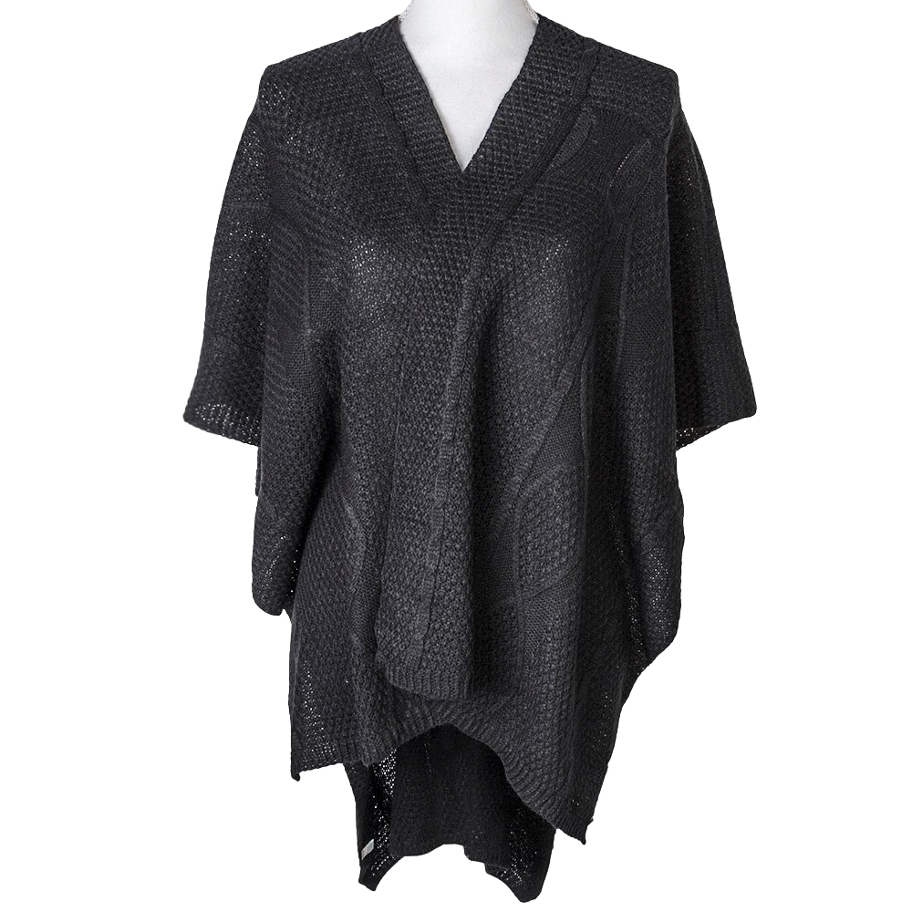 SOLID KNIT PONCHO WITH WIDE SLEEVES AND CLEAN EDGES