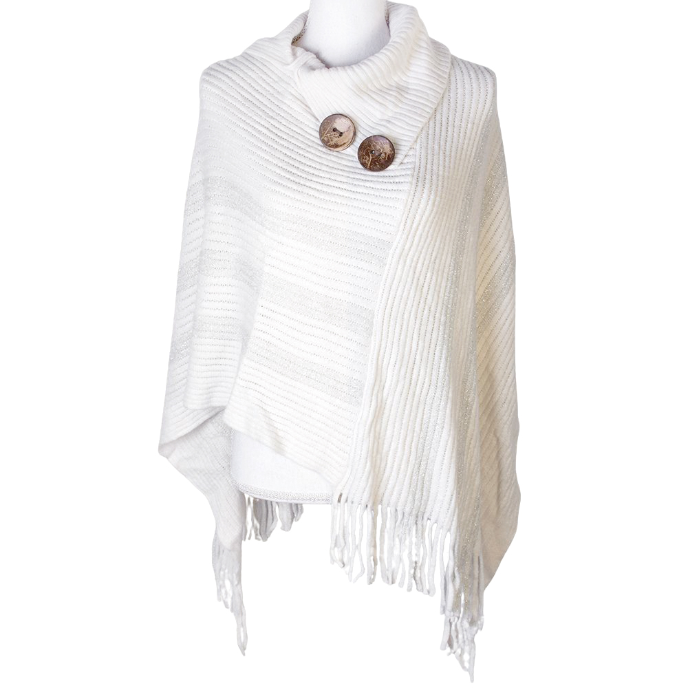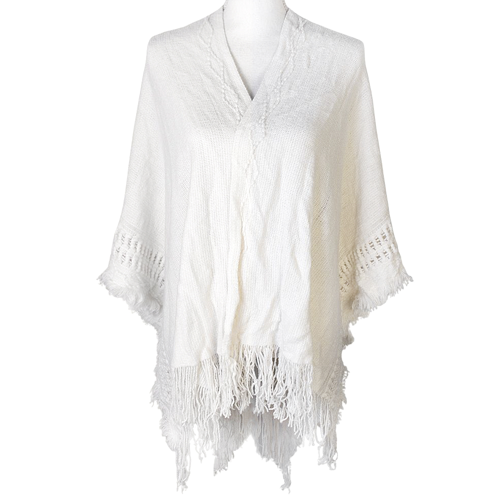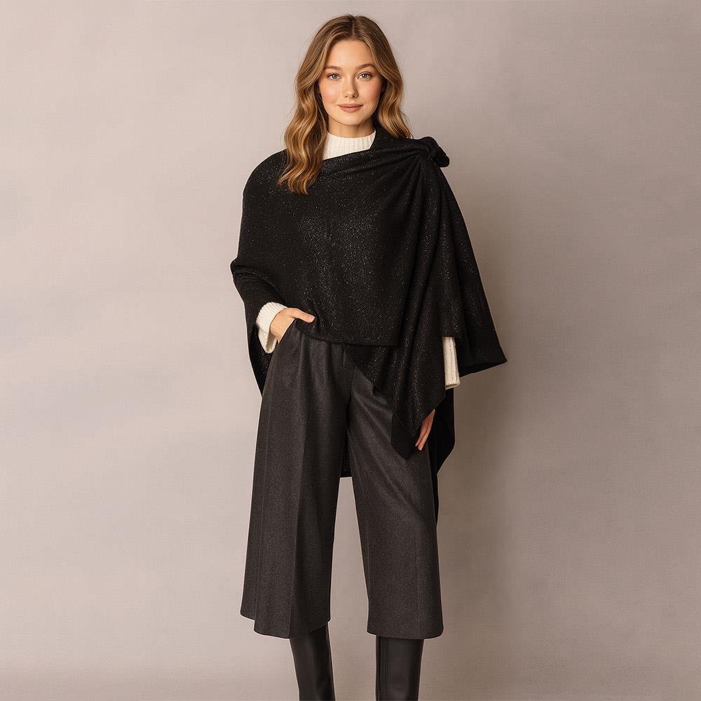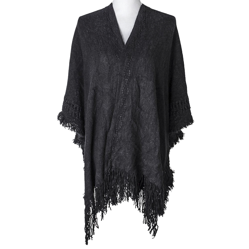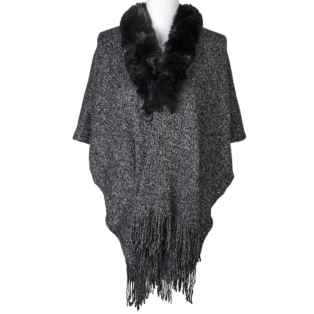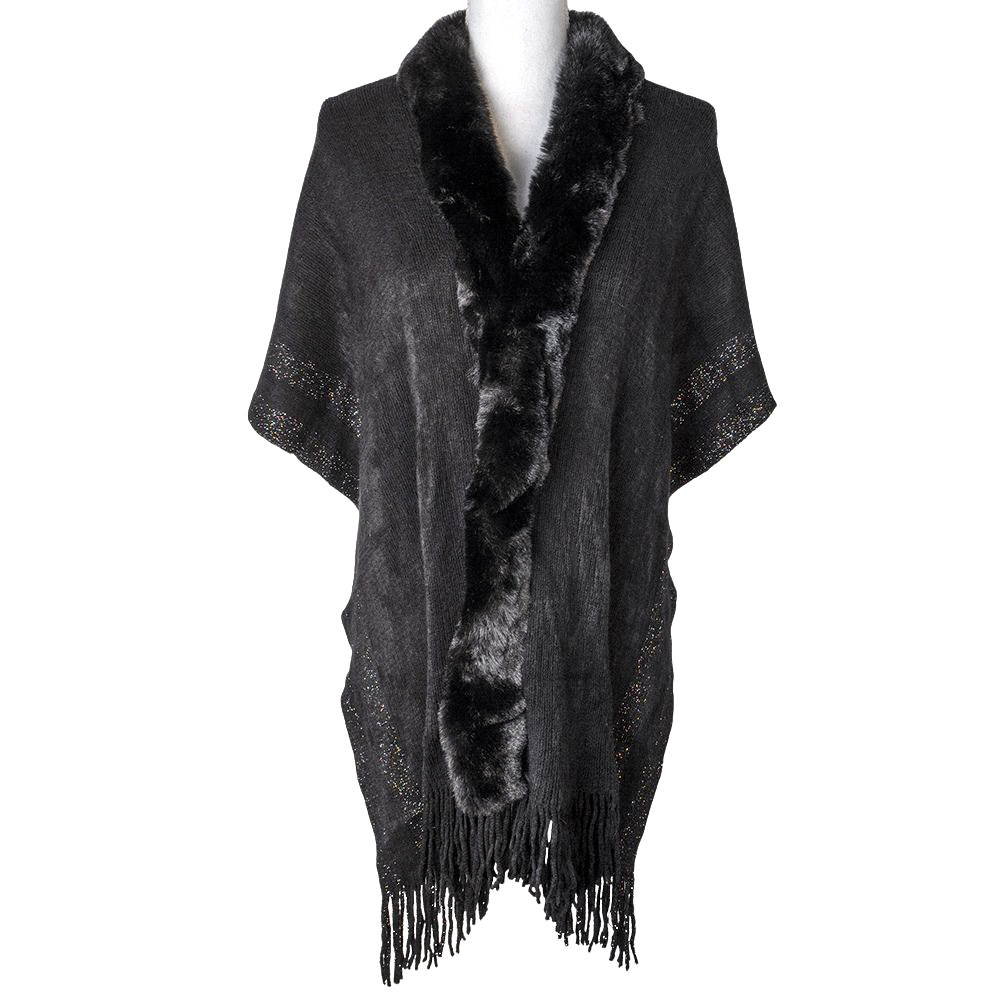 LIGHTWEIGHT FUZZY SEQUIN PONCHO WITH FRINGE