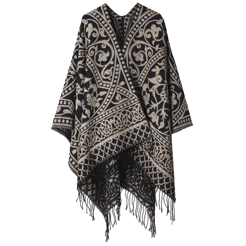 PATCHWORK PATTERN CAPE WITH POCKETS