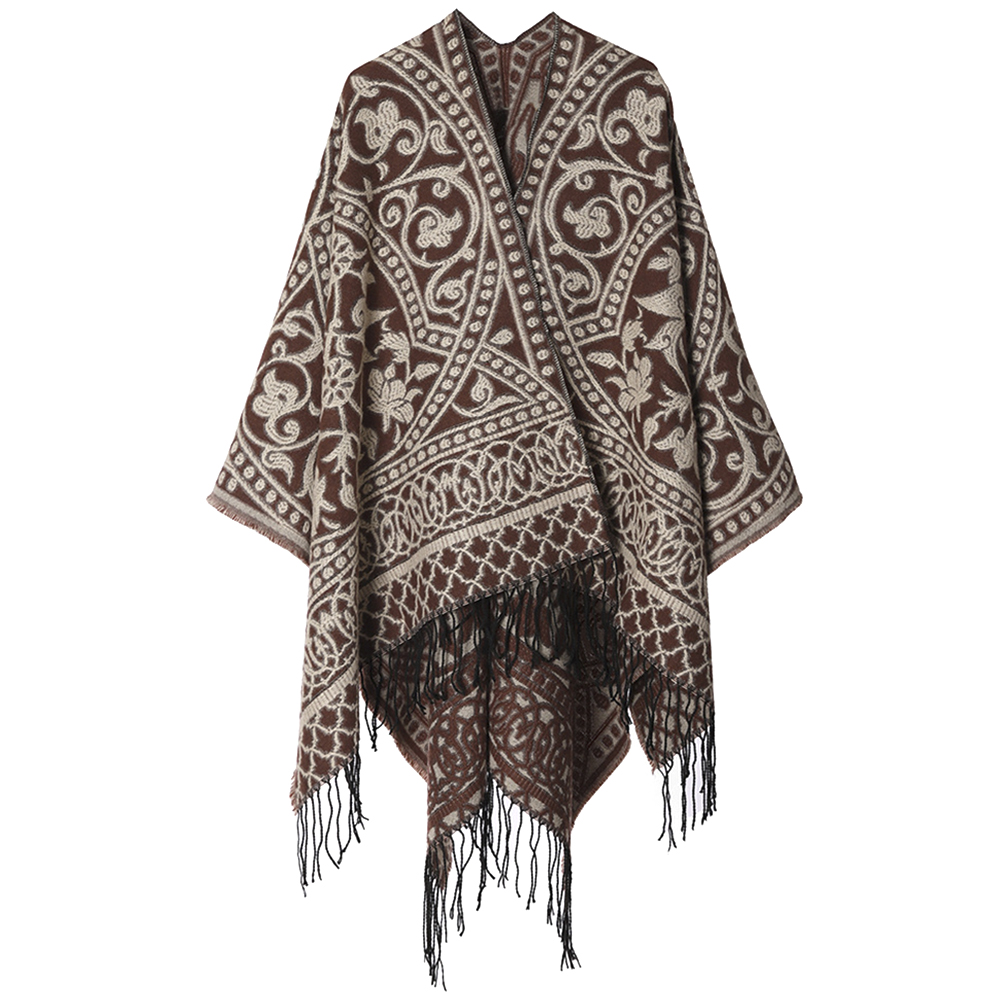 AZTEC LEOPARD PATTERN FRINGE RUANA