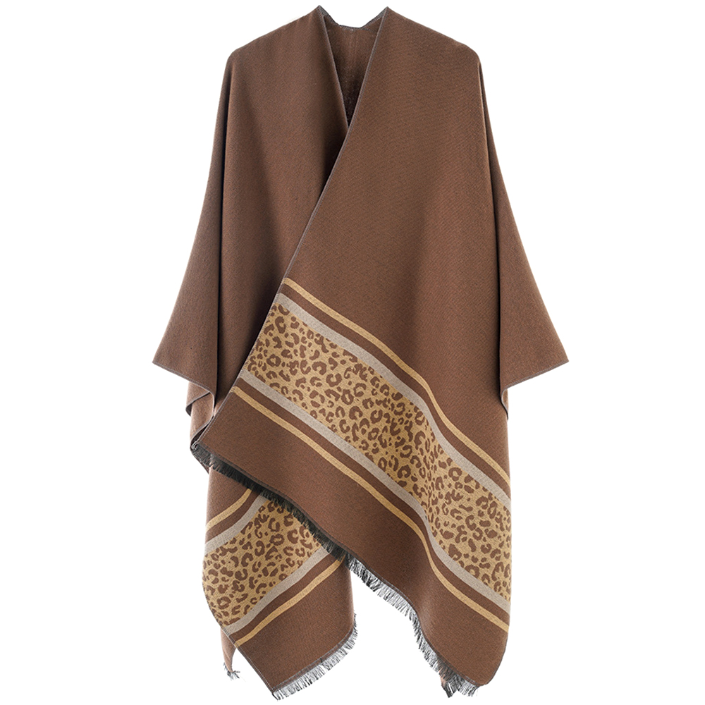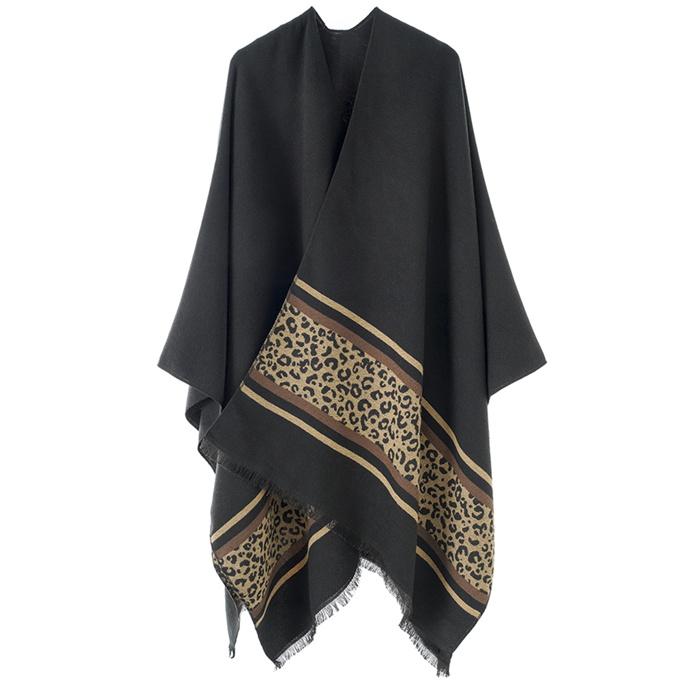 FASHION LEOPARD PRINT MIX FRONT OPEN PONCHO