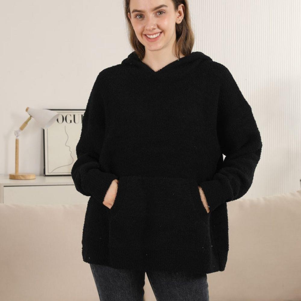 SOLID COLOR HOODED SWEATER W/ POCKET