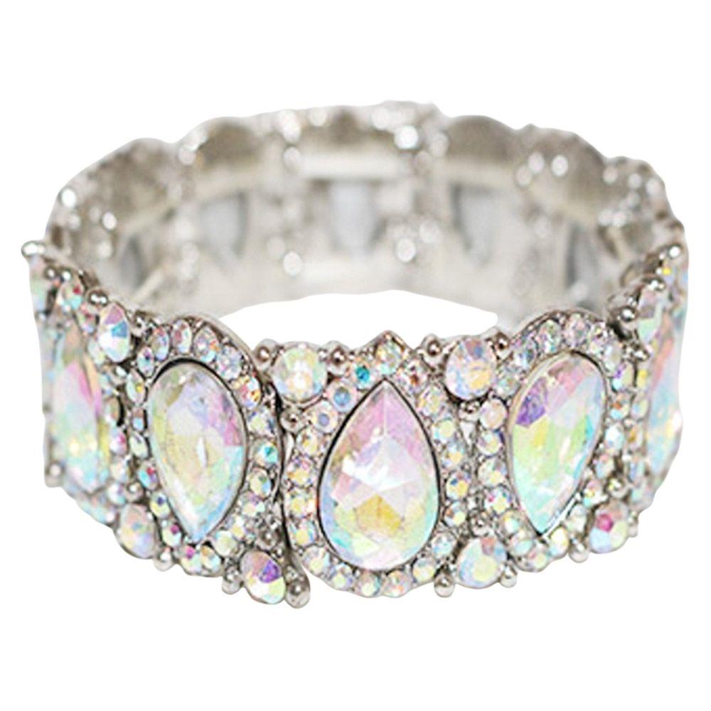 ACRYLIC TUBE RHINESTONE BALL BEAD STRETCH BRACELET