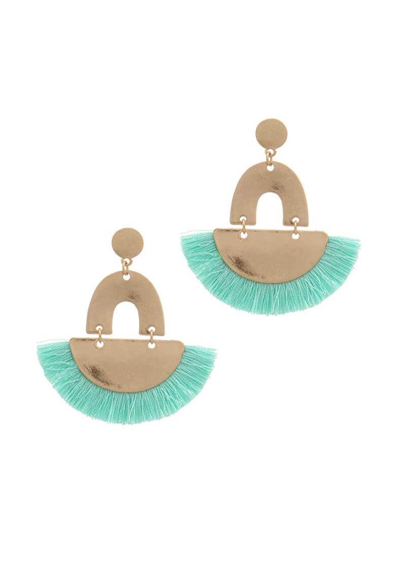 BEADED OVAL SHAPE TASSEL POST DROP EARRING