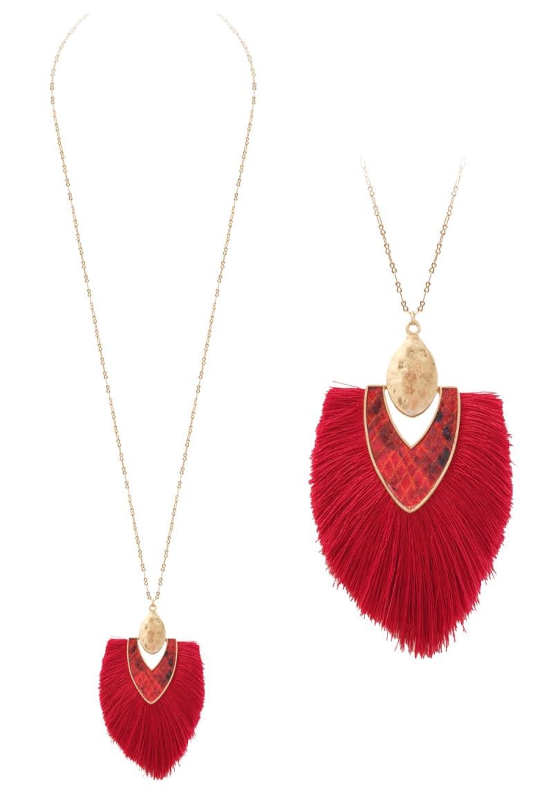 HAMMERED V SHAPE TASSEL EDGE PENDANT NECKLACE