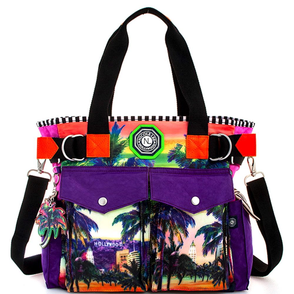 Nicole Lee HOLLYWOOD PRINT WRINKLE-RESISTANT CRINKLE NYLON TOTE BAG