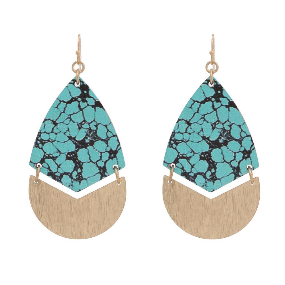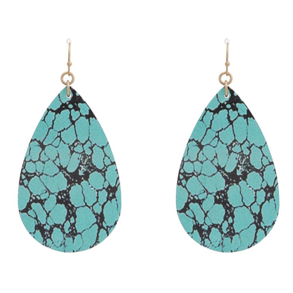 BOHEMIAN STYLE TEARDROP TQ STONE HOOK EARRING