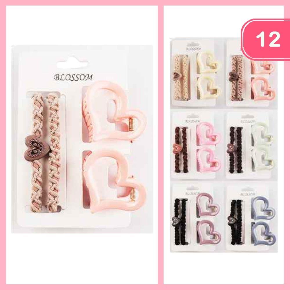 HEART HAIR CLAW CLIP HAIR TIE SET (12 UNITS)