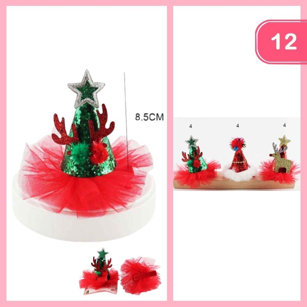 CHRISTMAS TULL HAT HAIR PINS (12 UNITS)