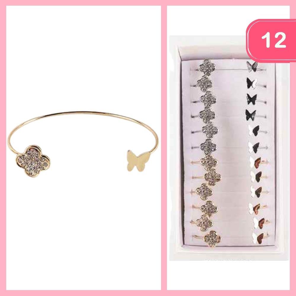 OPEN CUFF FLOWER BUTTERFLY BRACELET (12 UNITS)