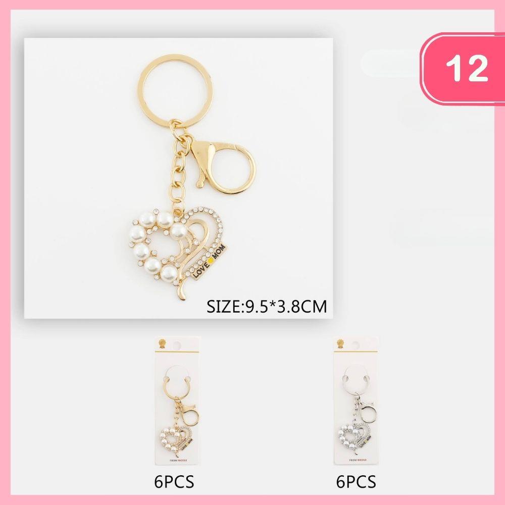 RHINESTONE PEARL LOVE MOM KEYCHAIN (12 UNITS)
