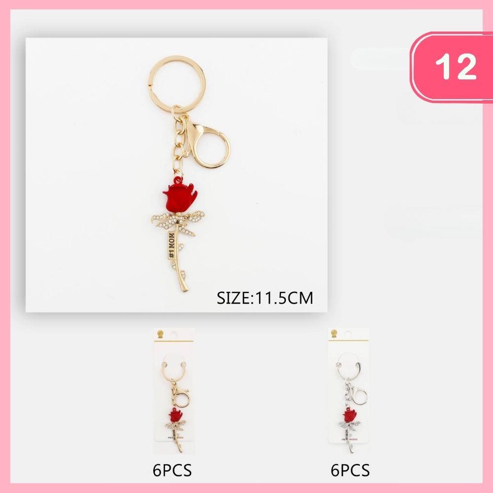 #1 MOM RHINESTONE ROSE KEYCHAIN (12 UNITS)
