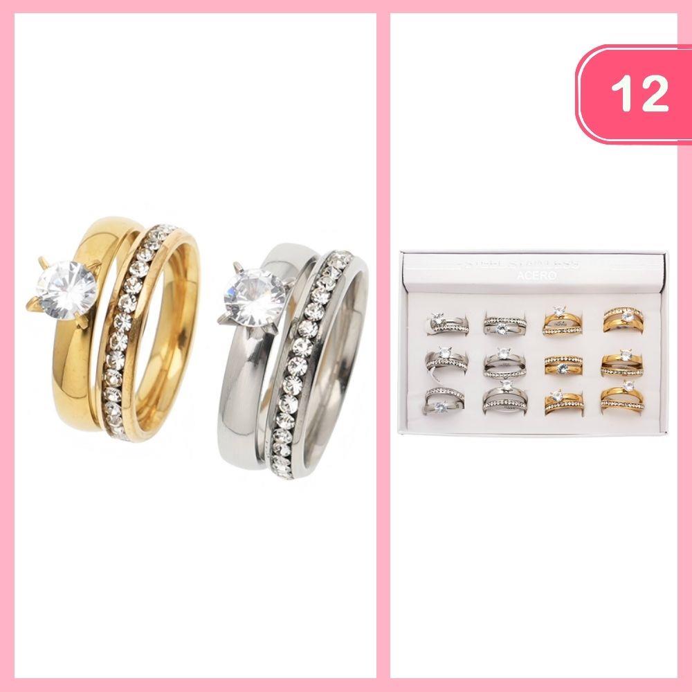 STAINLESS STEEL RHINESTONE STACKABLE RING (12 UNITS)