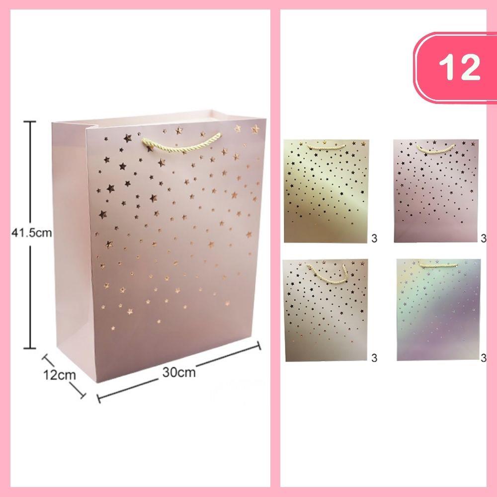 ROSE STAR GLITTER STRIP PATTERN PAPER GIFT BAG (12 UNITS)
