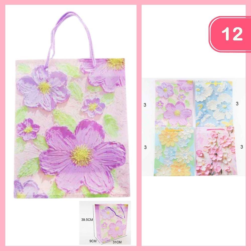 PAPER FLORAL GIFT BAG WITH LONG HANDLES (12 UNITS)