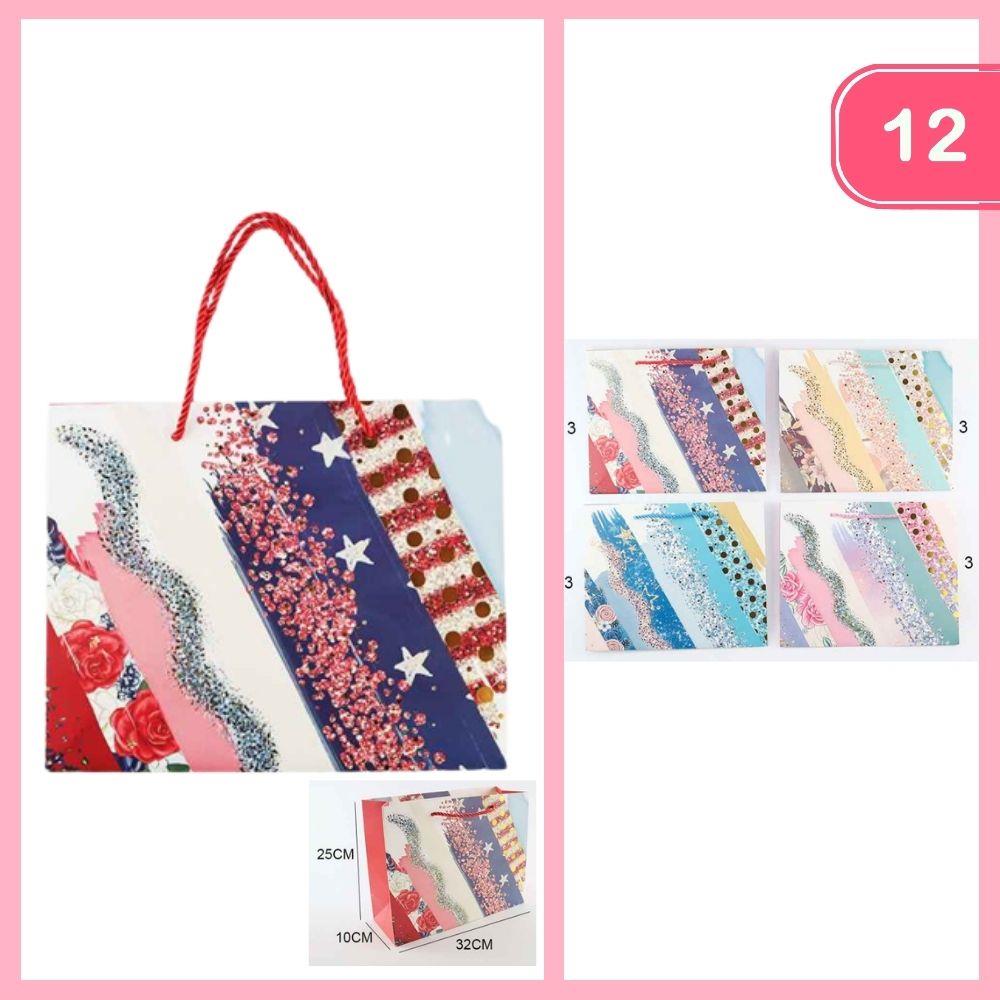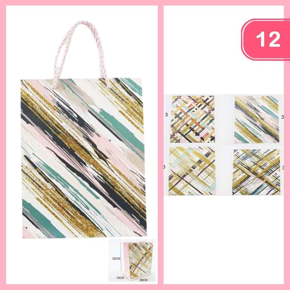 BRUSHSTROKE GLITTER PATTERN GIFT BAG (12 UNITS)