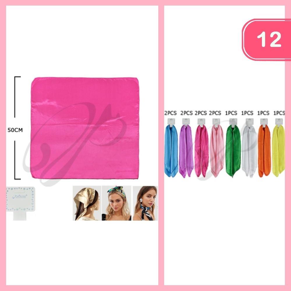 SOLID SATIN SQUARE MULTI USE HAIR SCARF BANDANA (12 UNITS)