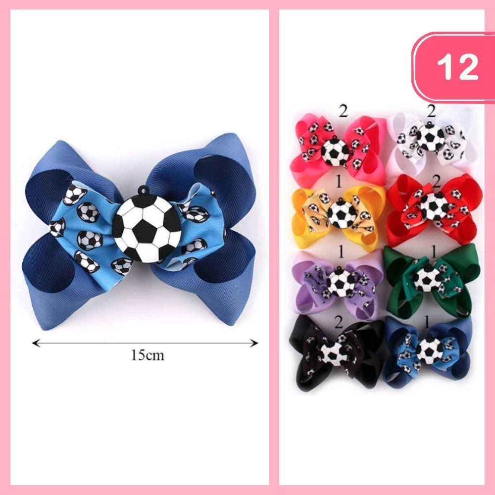 RIBBON SOCCER HAIR BOW (12 UNITS)