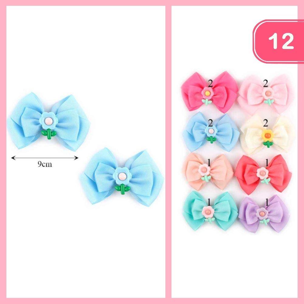 CUTE FLOWER CHARM RIBBON HAIR BOW (12 UNITS)