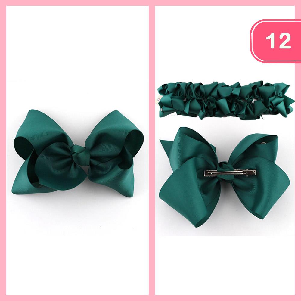 SILK RIBBON RHINESTONE HAIR BOW (12 UNITS)